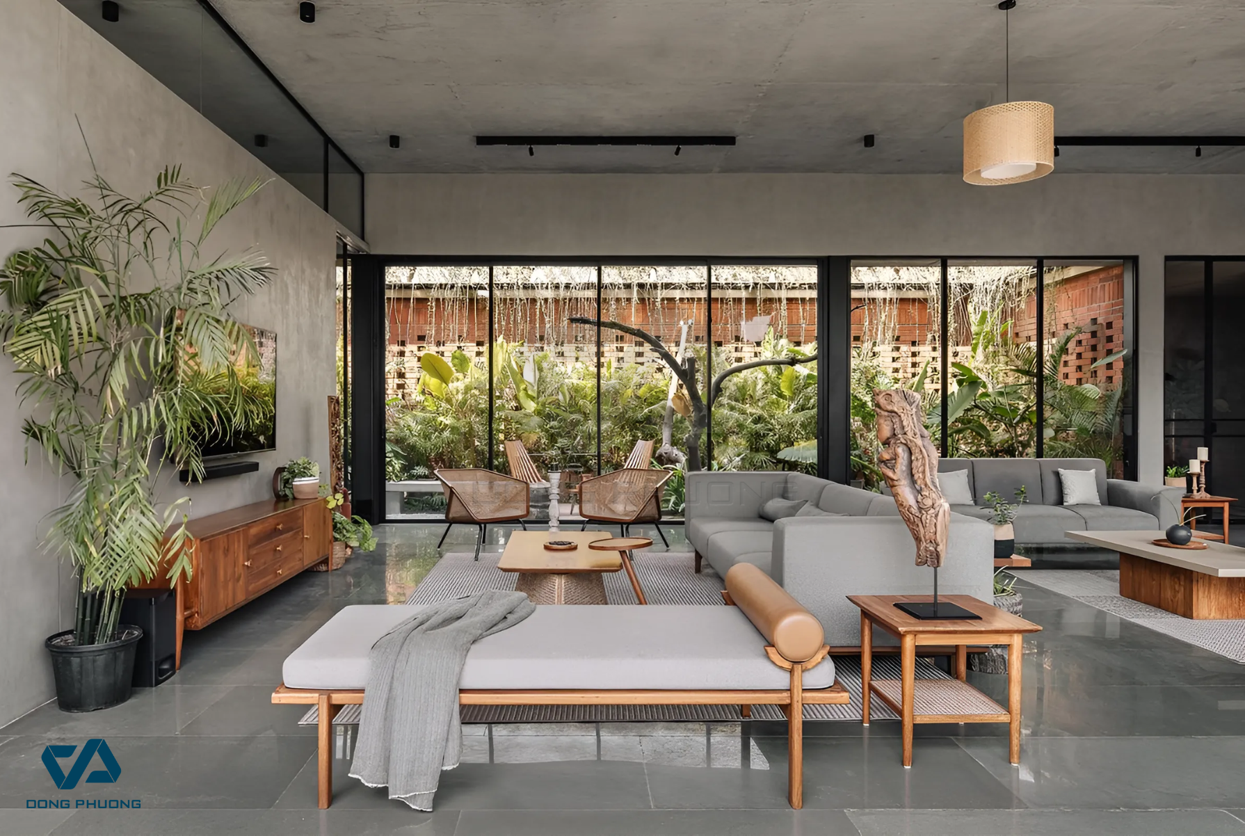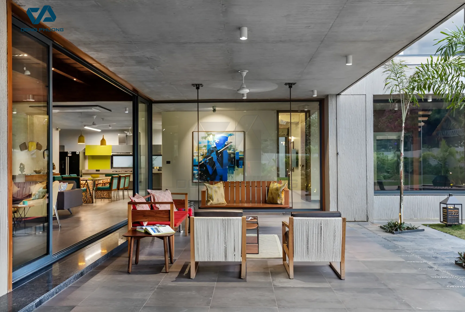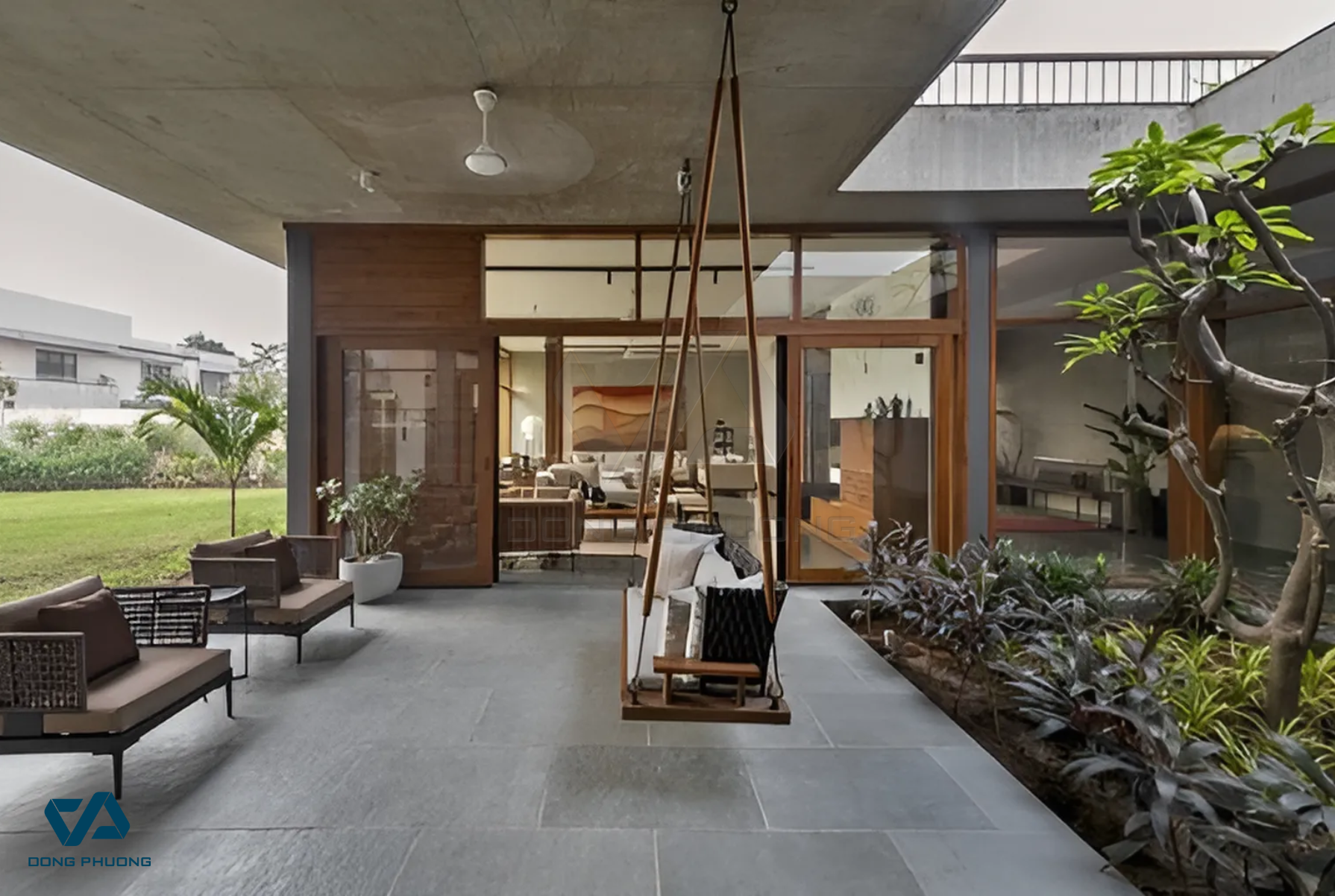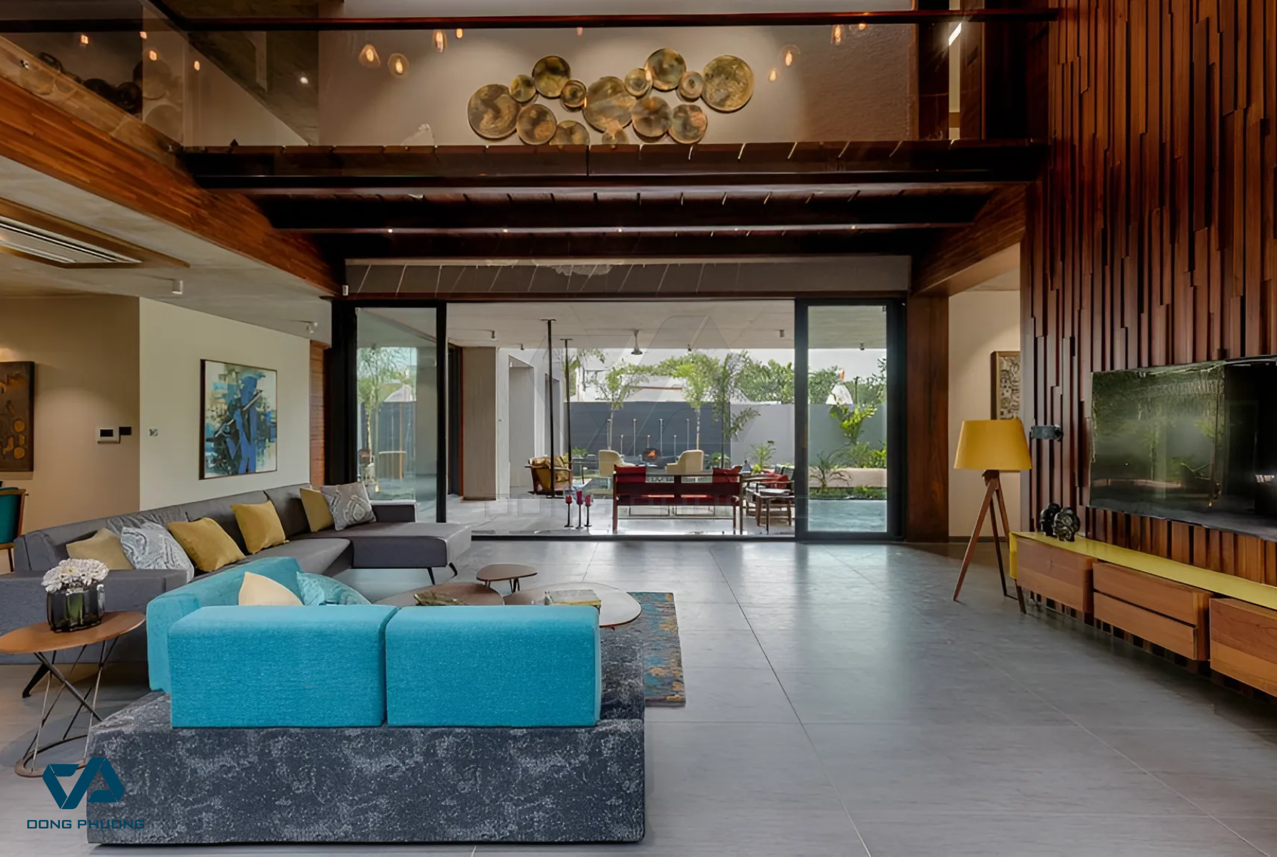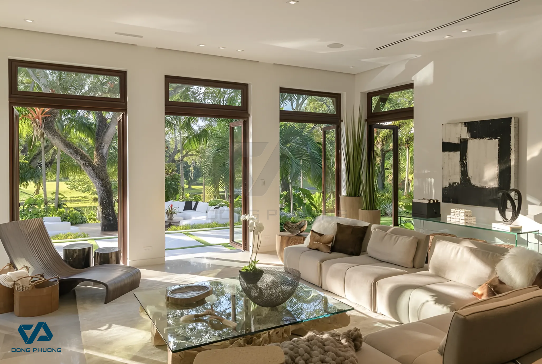 Cửa trượt ngang bằng nhôm kính vừa tiết kiệm diện tích, vừa tạo sự liền mạch không gian, rất phù hợp cho biệt thự có khoảng sân vườn rộng hoặc phòng khách mở.