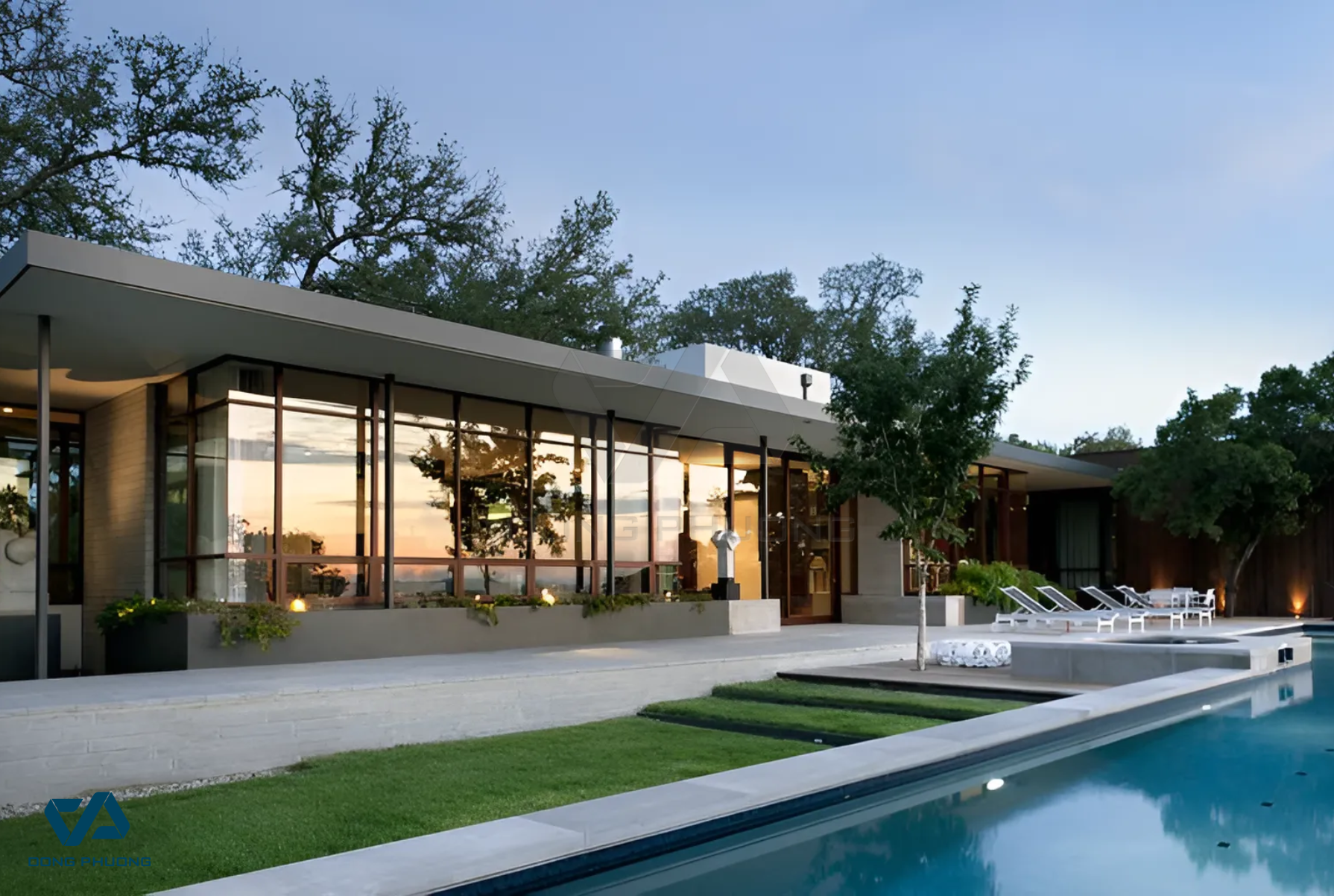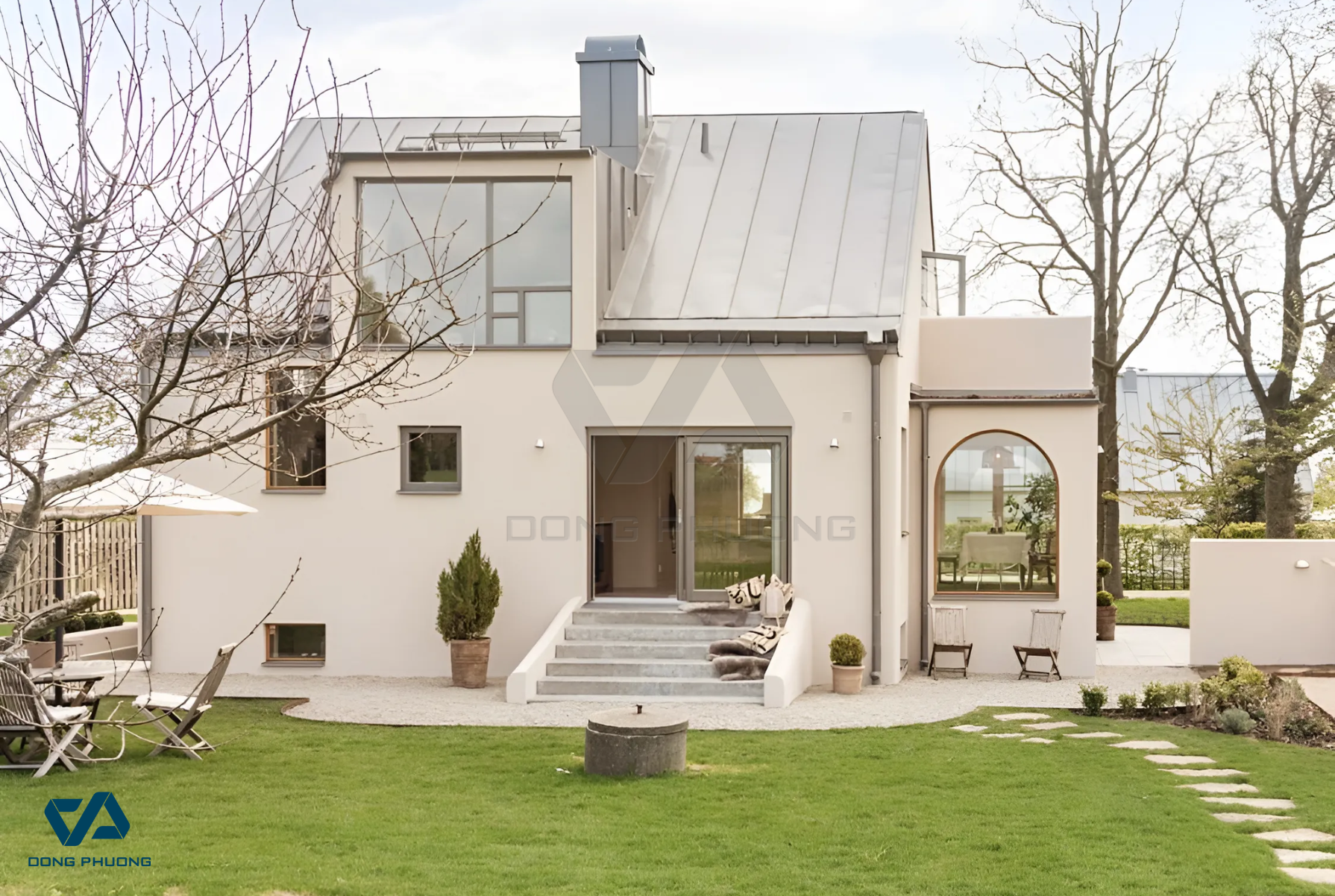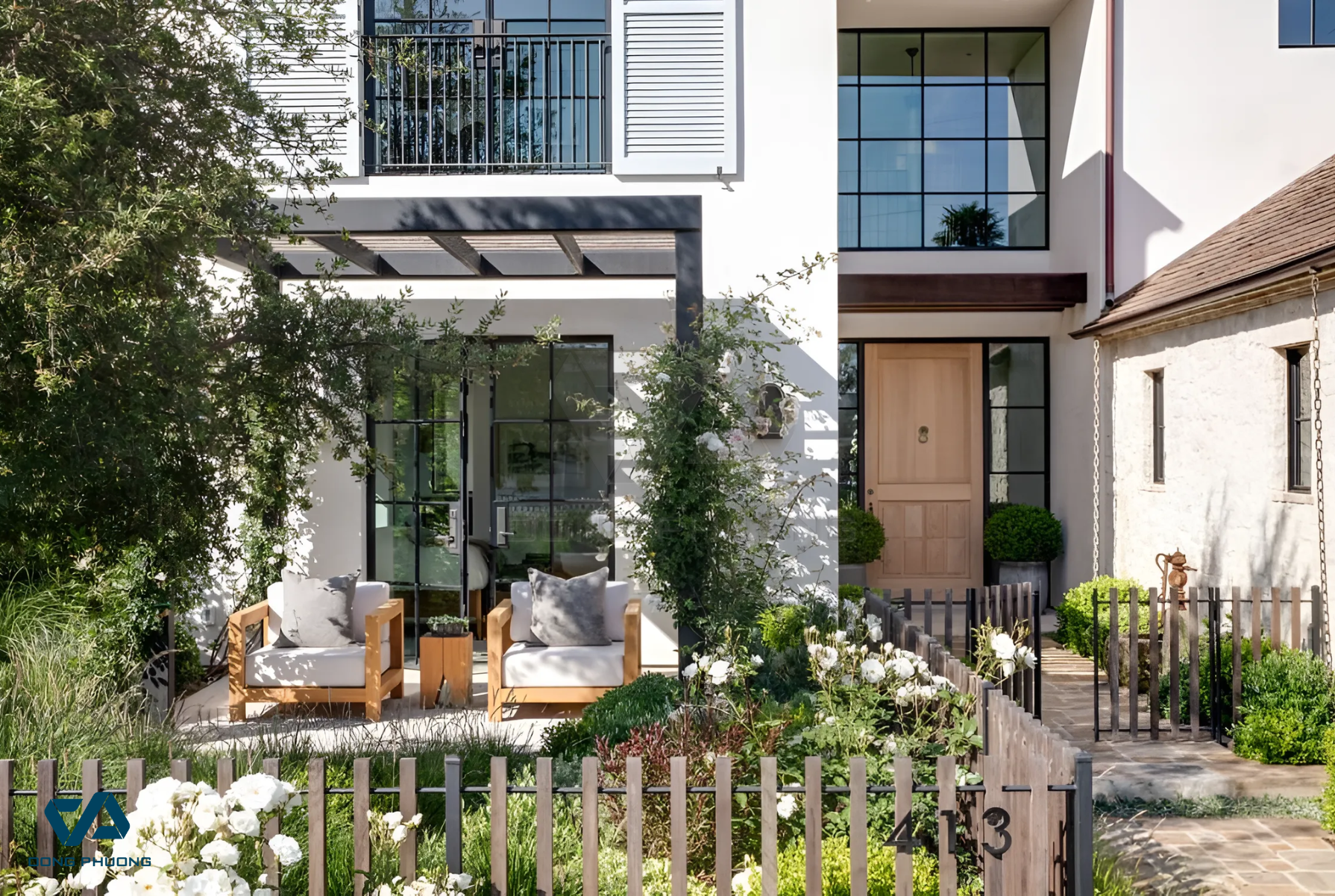 Ví dụ: Một biệt thự phong cách Minimalism kết hợp cửa nhôm kính khung đen mảnh sẽ toát lên vẻ tinh tế, hiện đại mà không cần nhiều chi tiết cầu kỳ.