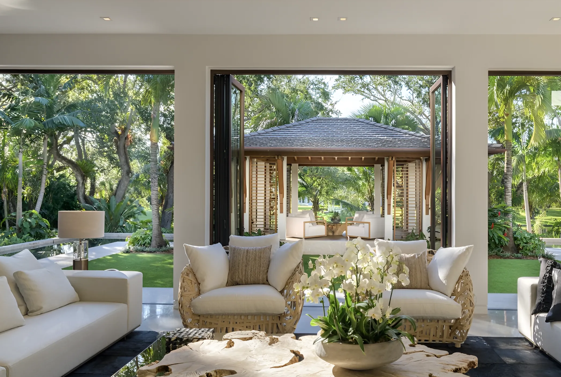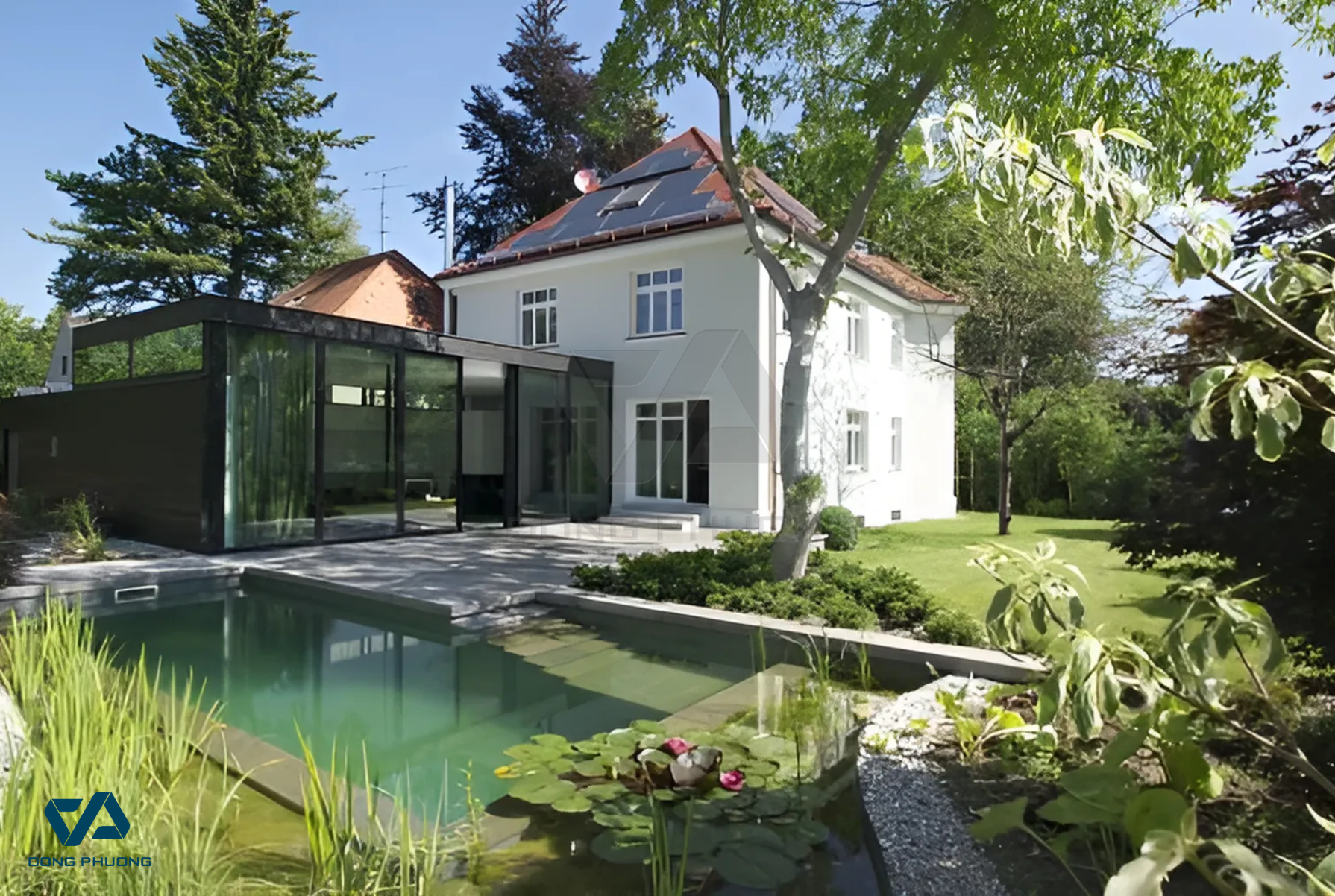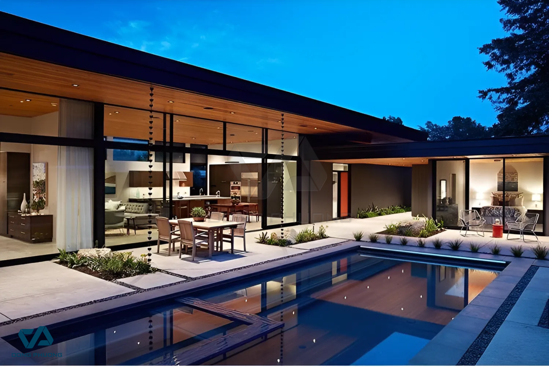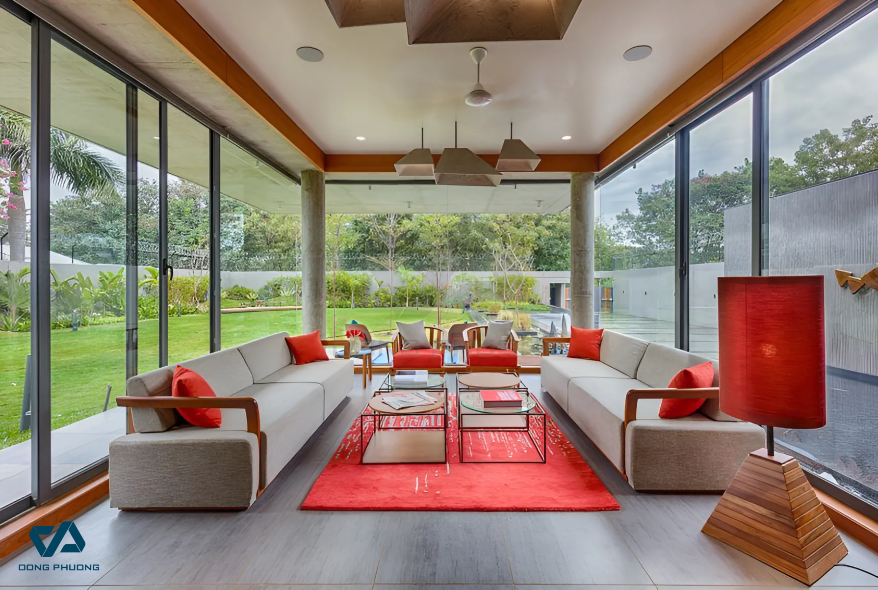 Gia chủ ưa chuộng cửa toàn kính (full glass) để mở rộng tầm nhìn ra sân vườn hoặc hồ bơi. Đây cũng là cách mang thiên nhiên vào không gian sống, tạo cảm giác thoáng đãng.