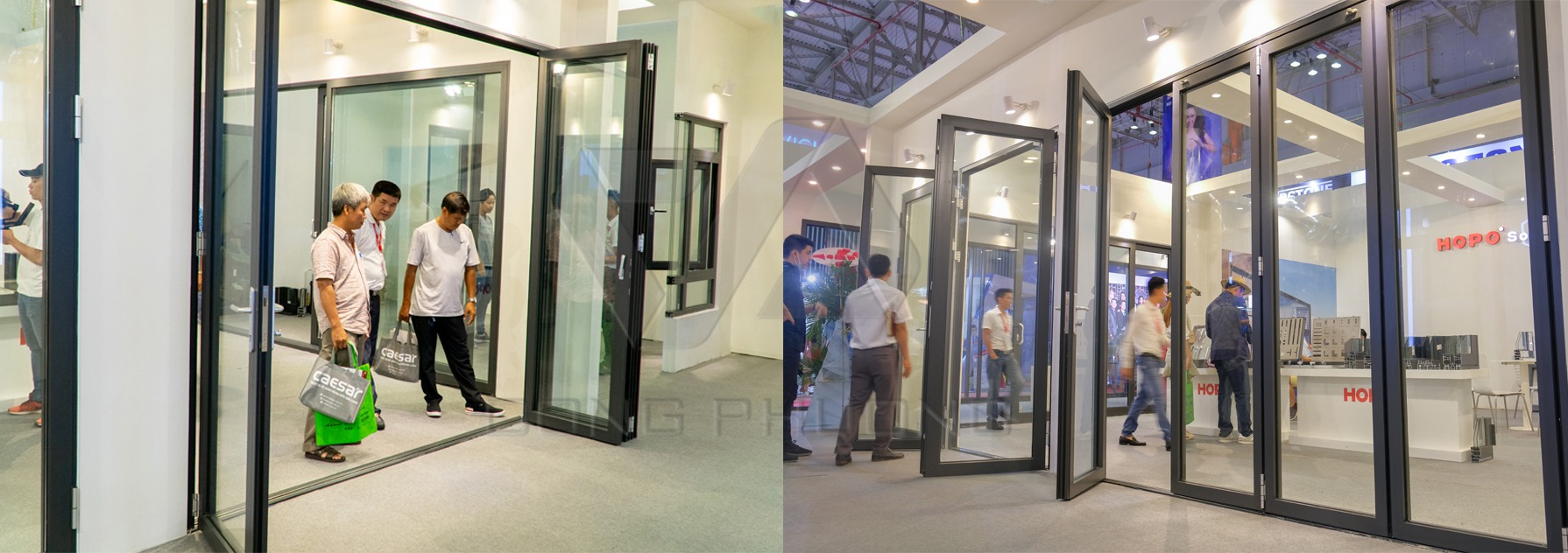 Cửa lùa slim góc vuông tại triển lãm Vietbuild