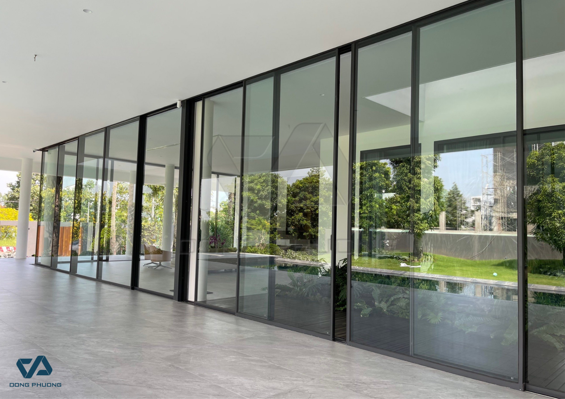 - Hệ thống thanh profile nhôm slim không cầu chuyên dụng, đảm bảo tính thông thoáng tốt, tăng độ truyền sáng và mở rộng tầm nhìn.