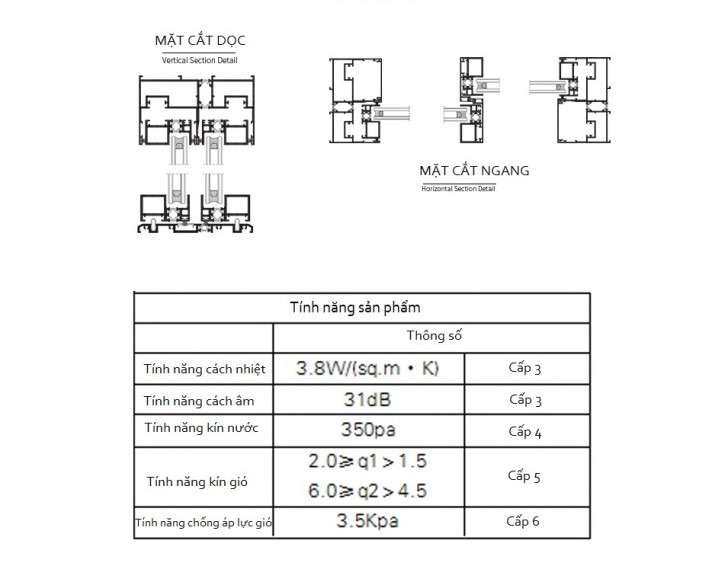 Hệ thống thanh profile cách nhiệt chuyên dụng, đảm bảo tính thông thoáng tốt.