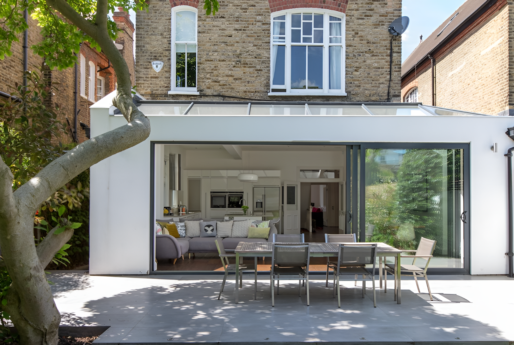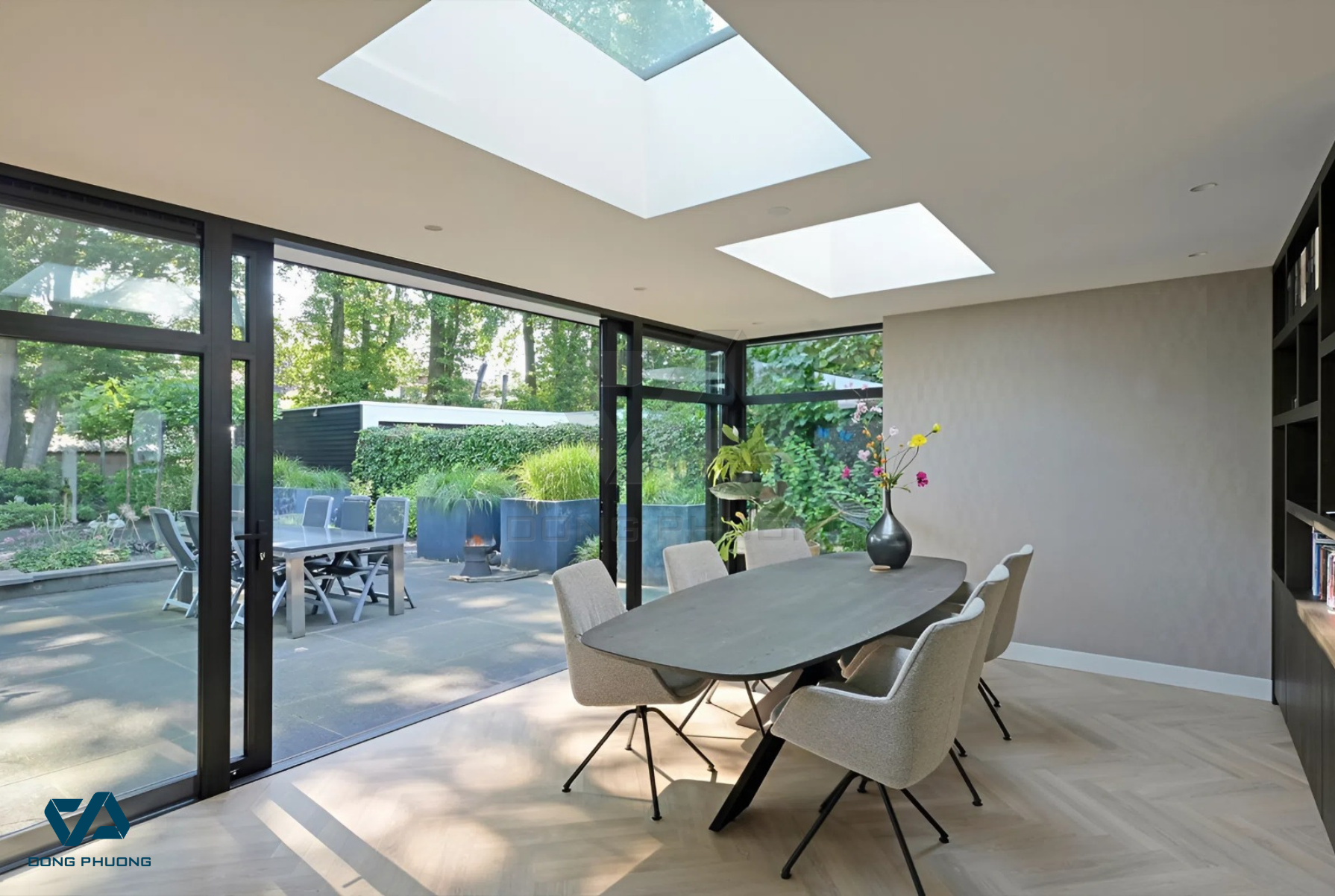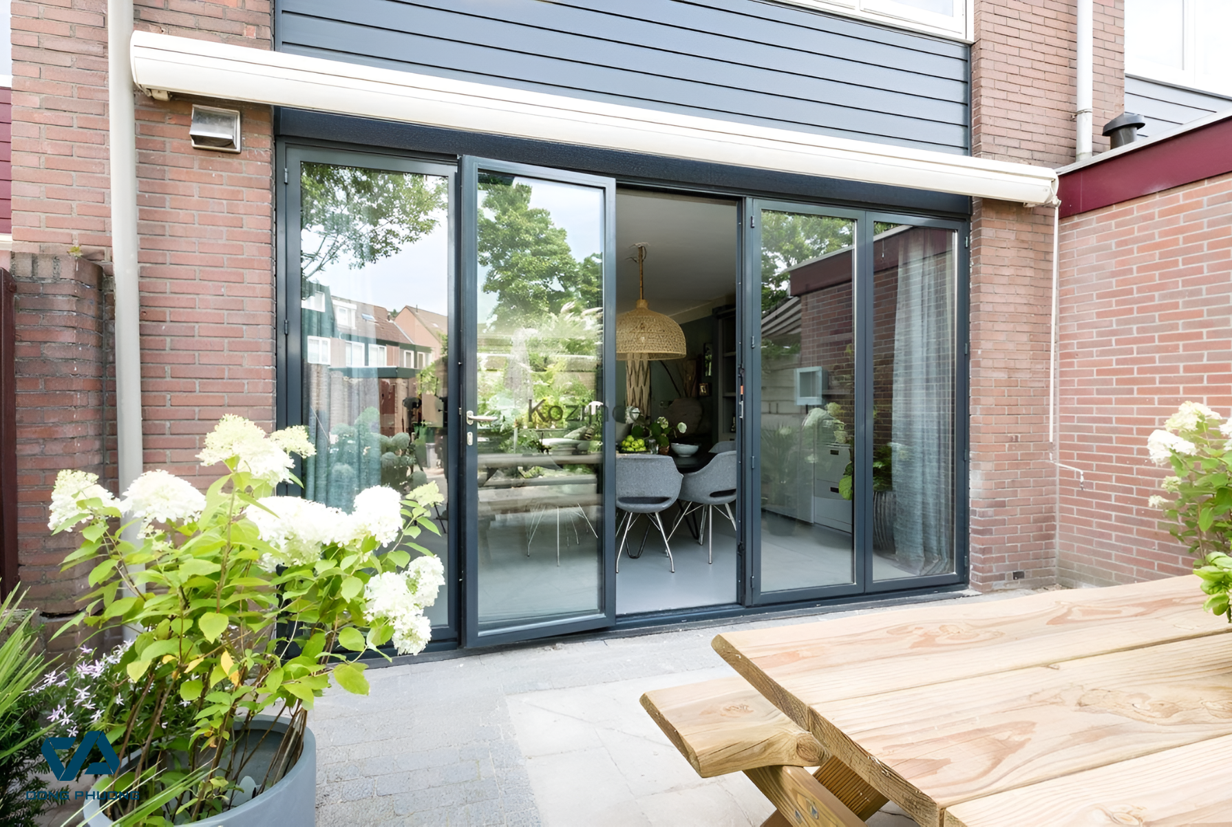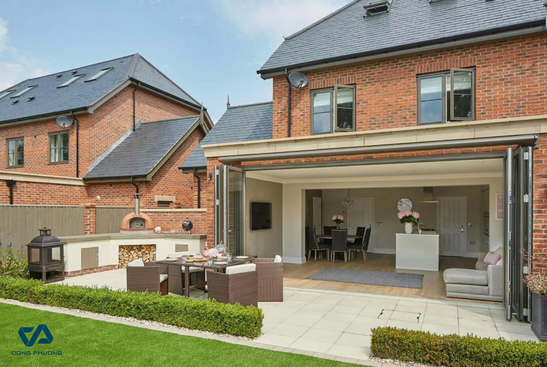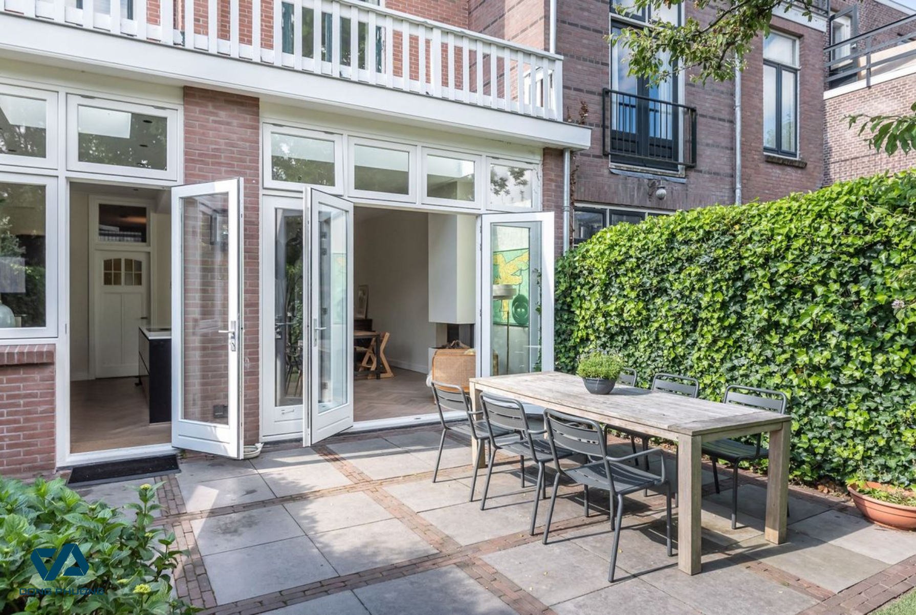 Cửa xếp trượt nhôm kính mang lại cảm giác rộng thoáng, lý tưởng cho biệt thự và nhà có sân vườn (Nguồn: Internet)