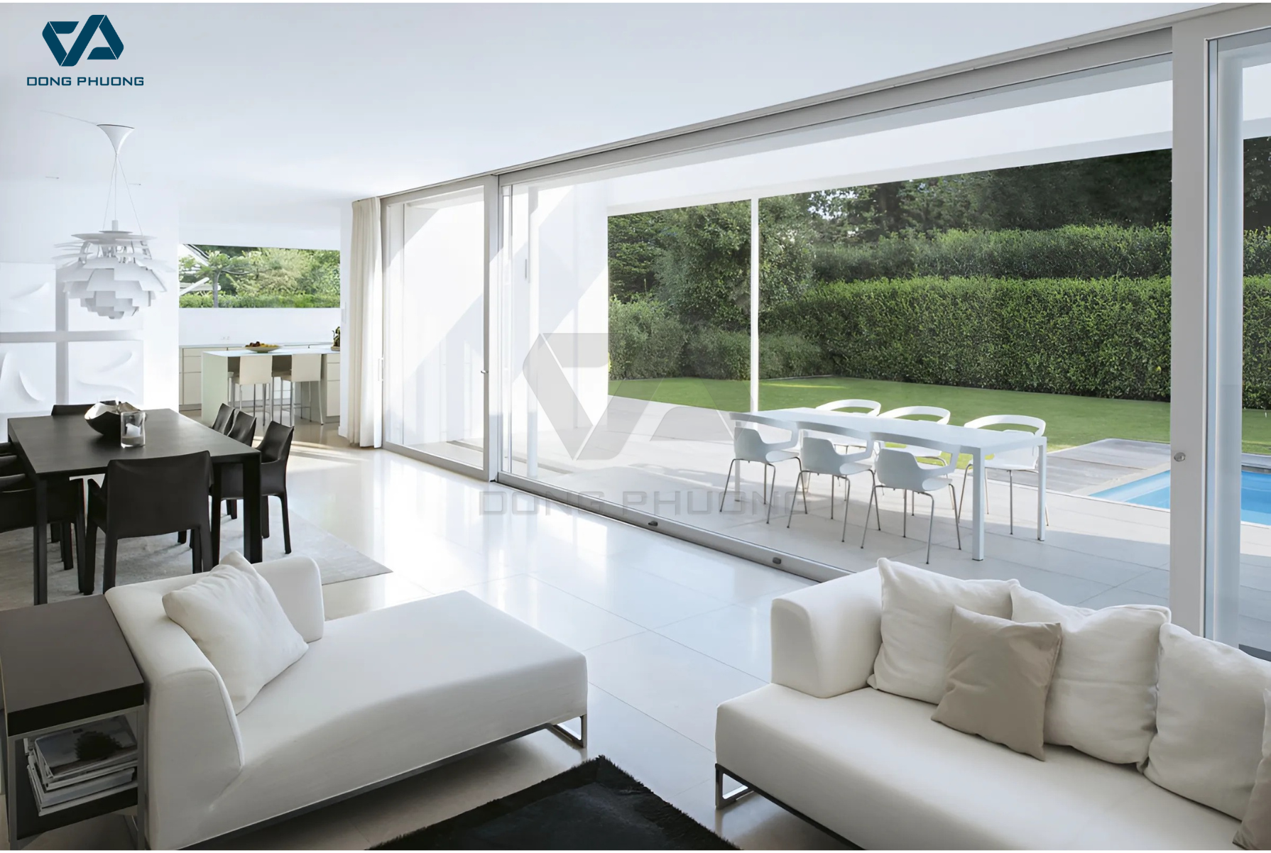 Cửa nhôm kính không chỉ giúp kết nối không gian trong – ngoài mà còn cần hài hòa với cảnh quan biệt thự sân vườn. Hãy cùng Đông Phương tìm hiểu cách thiết kế cửa vừa đẹp, vừa không phá vỡ vẻ tự nhiên của ngôi nhà bạn nhé!
