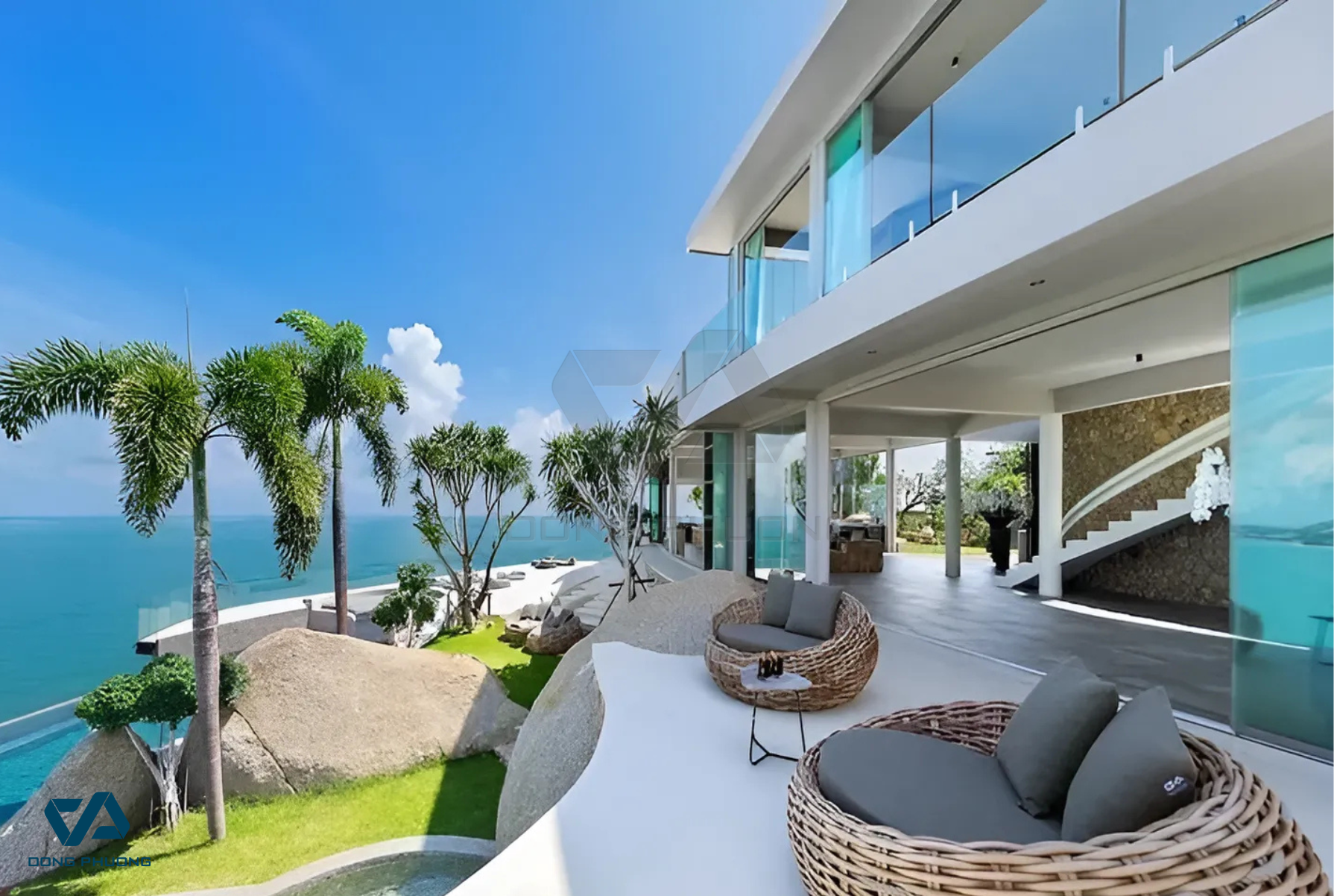 Biệt thự sát biển, thiết kế kính toàn phần – mở rộng tầm nhìn ra đại dương xanh biếc (Nguồn: Internet)