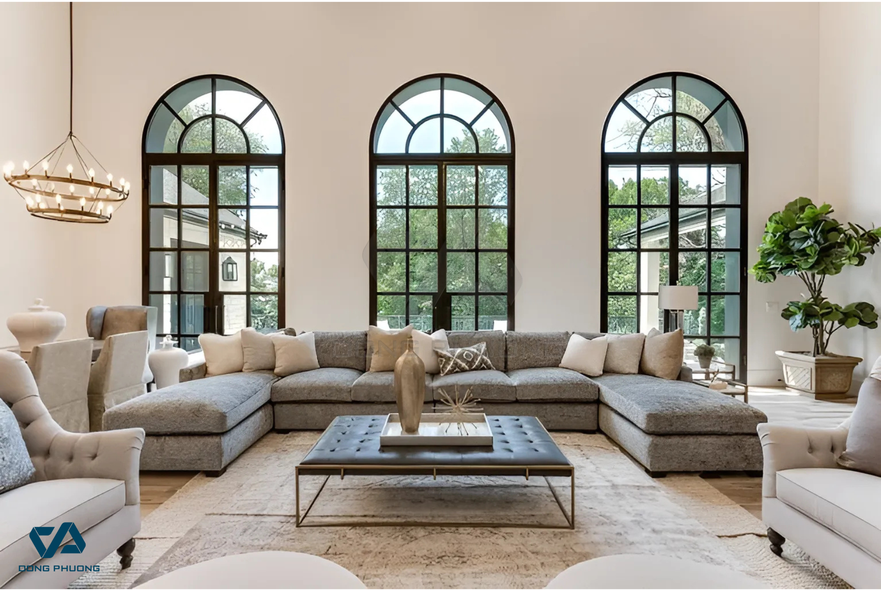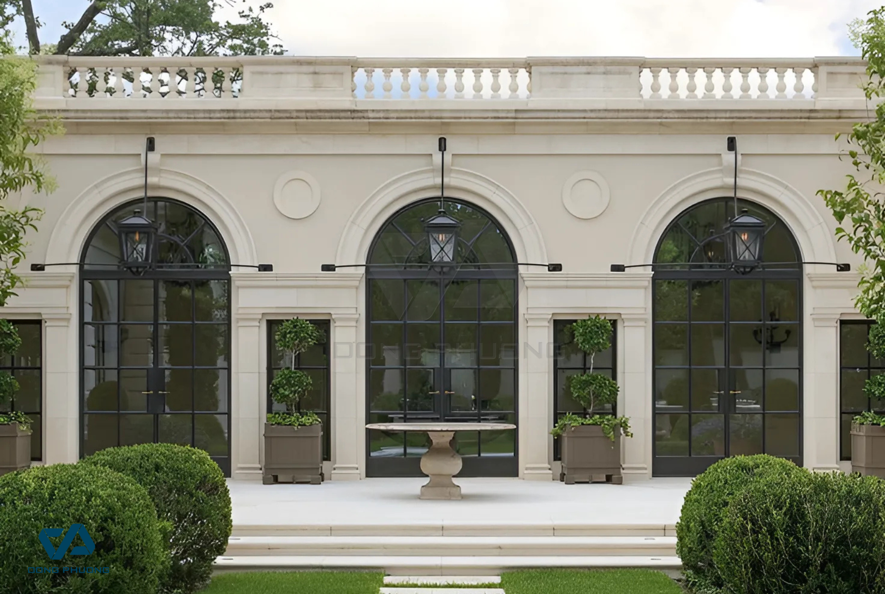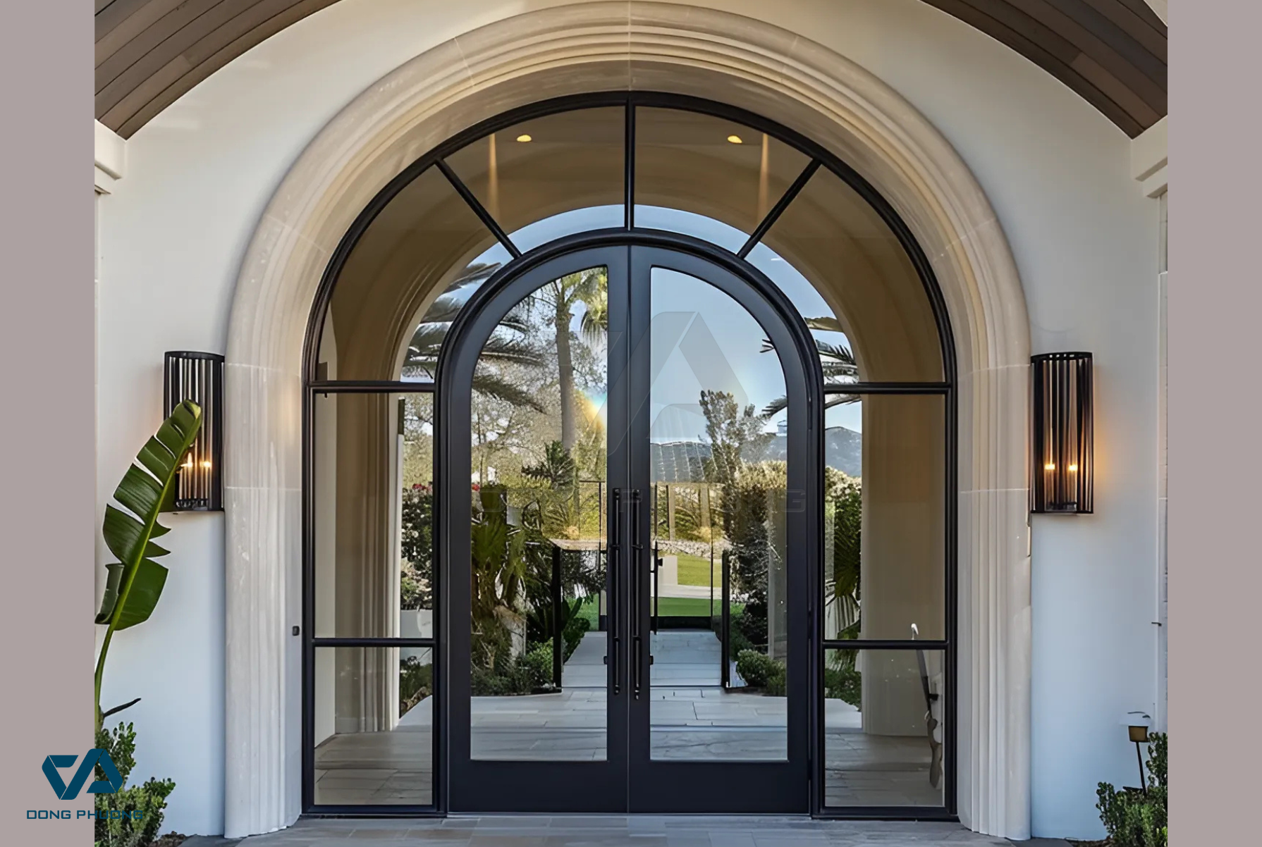 Với các công trình biệt thự theo phong cách bán cổ điển hoặc Địa Trung Hải, cửa vòm cong luôn là chi tiết đặc trưng tạo nên sự thanh thoát và hoài cổ. Cửa nhôm kính cong không chỉ tái hiện được hình dáng vòm cổ điển, mà còn nâng cấp bằng vật liệu hiện đại, nhẹ hơn, chắc hơn và bền vững hơn gỗ truyền thống.