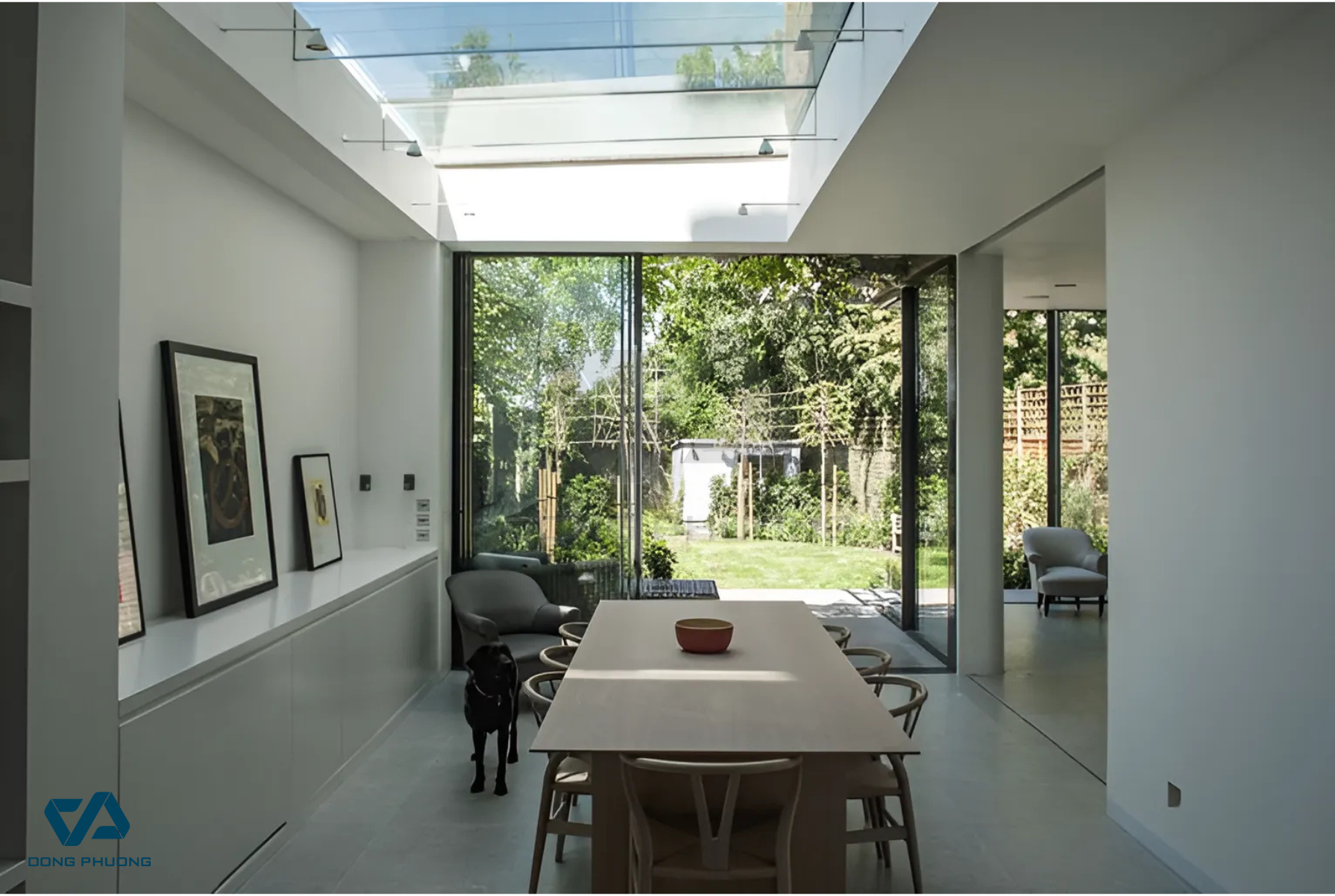 Khả năng lấy sáng vượt trội giúp giảm chi phí chiếu sáng nhân tạo và cải thiện tinh thần sống. Ánh sáng tự nhiên đi sâu vào từng góc phòng, tôn vinh nội thất và mang lại hiệu ứng màu sắc tự nhiên, sống động hơn so với ánh sáng đèn.