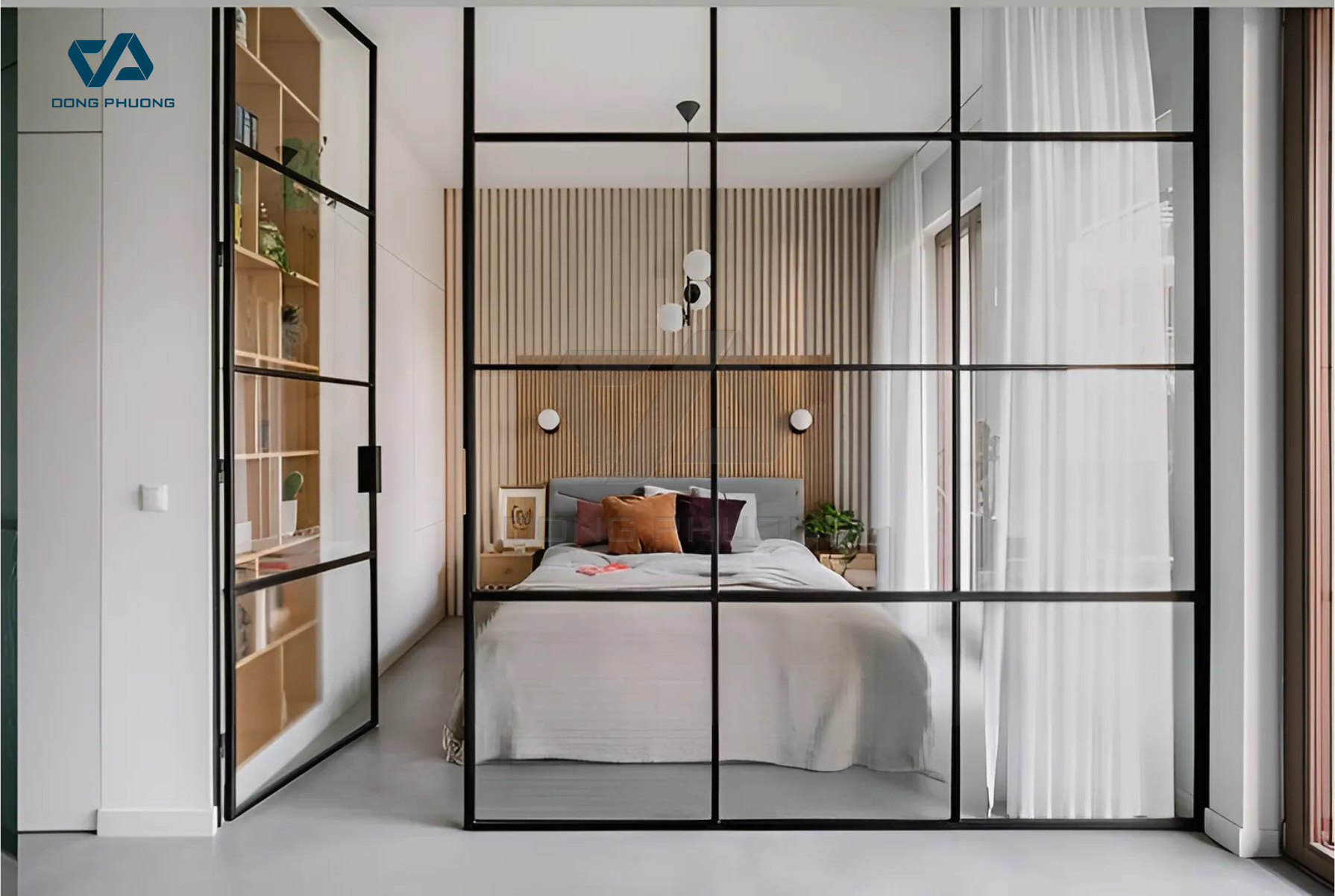 2. Các mẫu vách ngăn nhôm kính phòng ngủ đẹp 2025