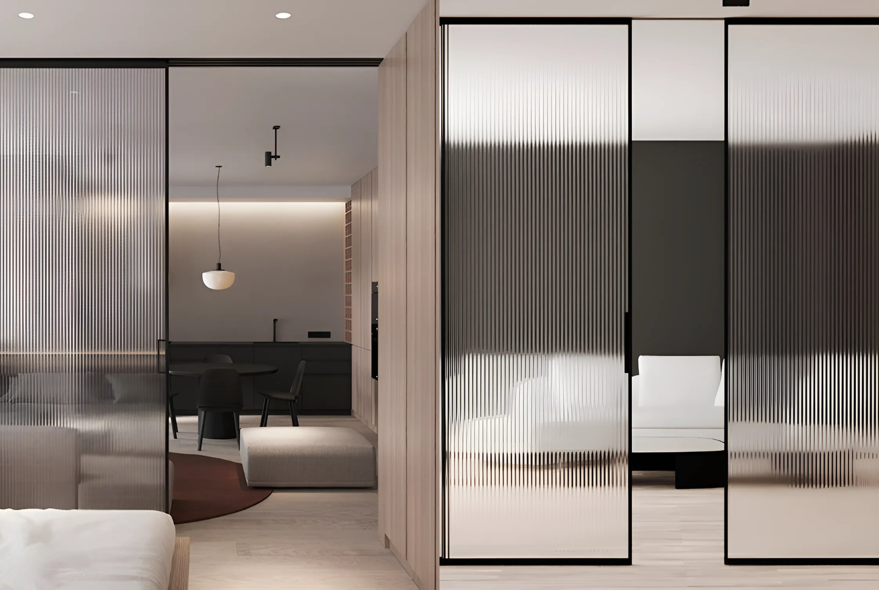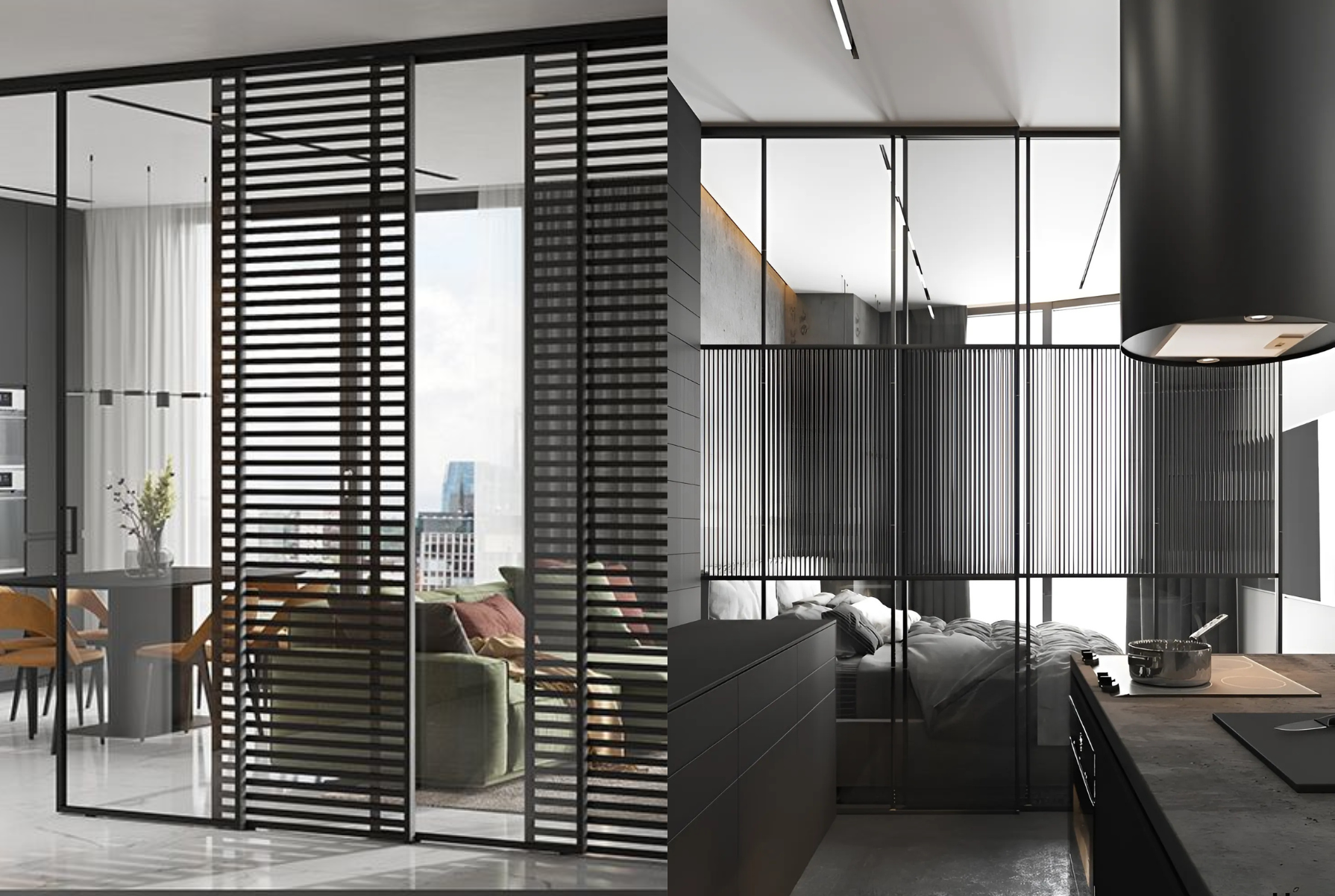 Vách ngăn phòng ngủ cửa kính sọc (Nguồn: Internet)