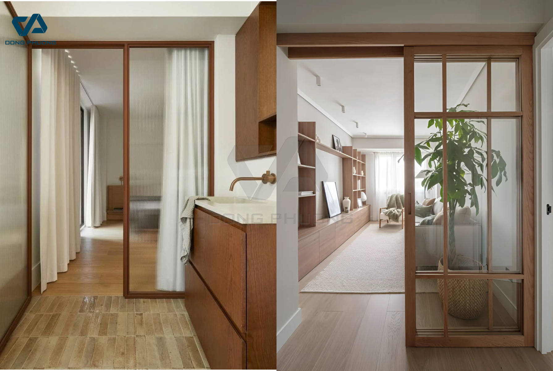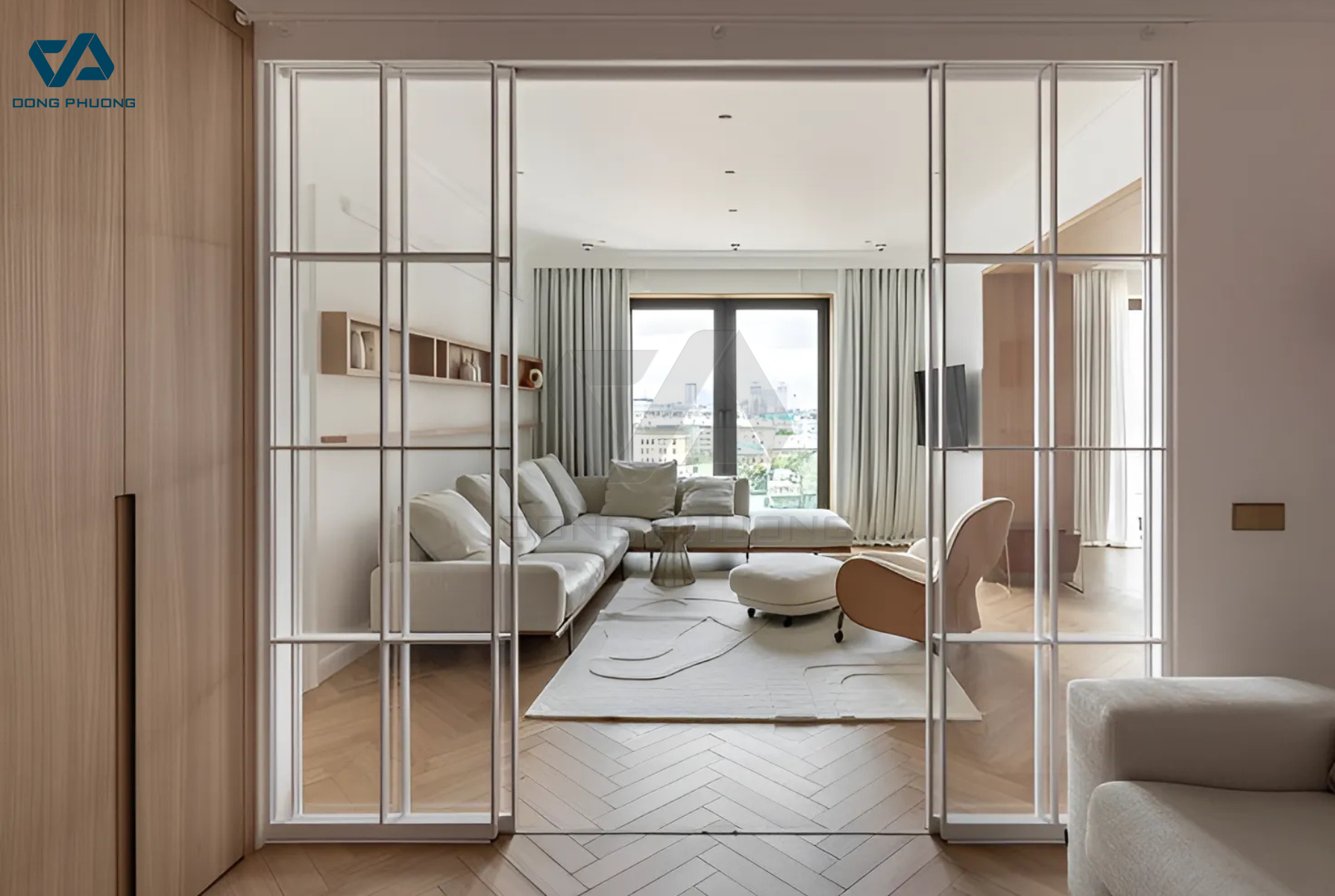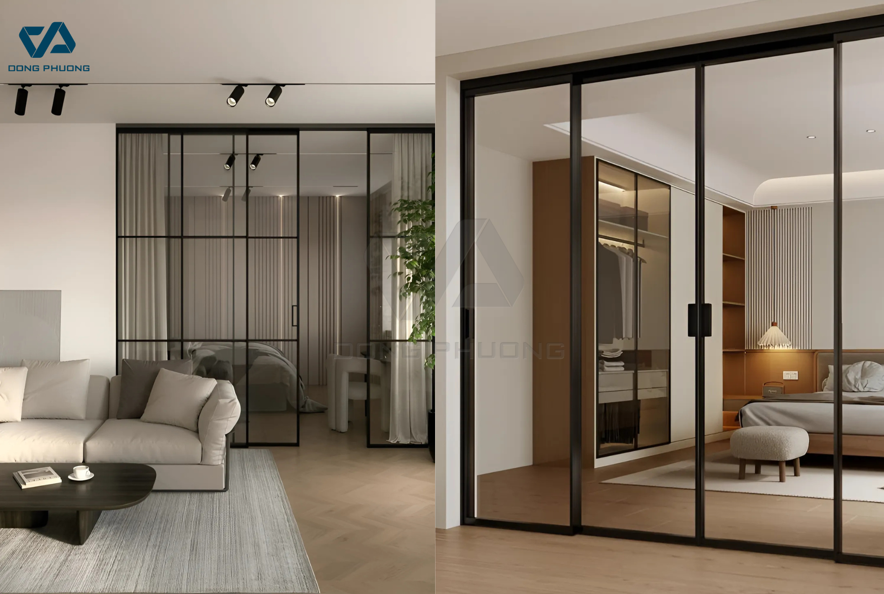 Khác với tường gạch truyền thống, vách nhôm kính giúp không gian mở rộng thị giác, đón sáng tự nhiên, dễ thi công, dễ vệ sinh và có tính linh hoạt cao. Đặc biệt với các căn hộ nhỏ, vách kính là giải pháp lý tưởng để tạo phòng thay đồ, phòng làm việc, hay chia đôi phòng ngủ đôi khi không cần phải xây thêm tường.