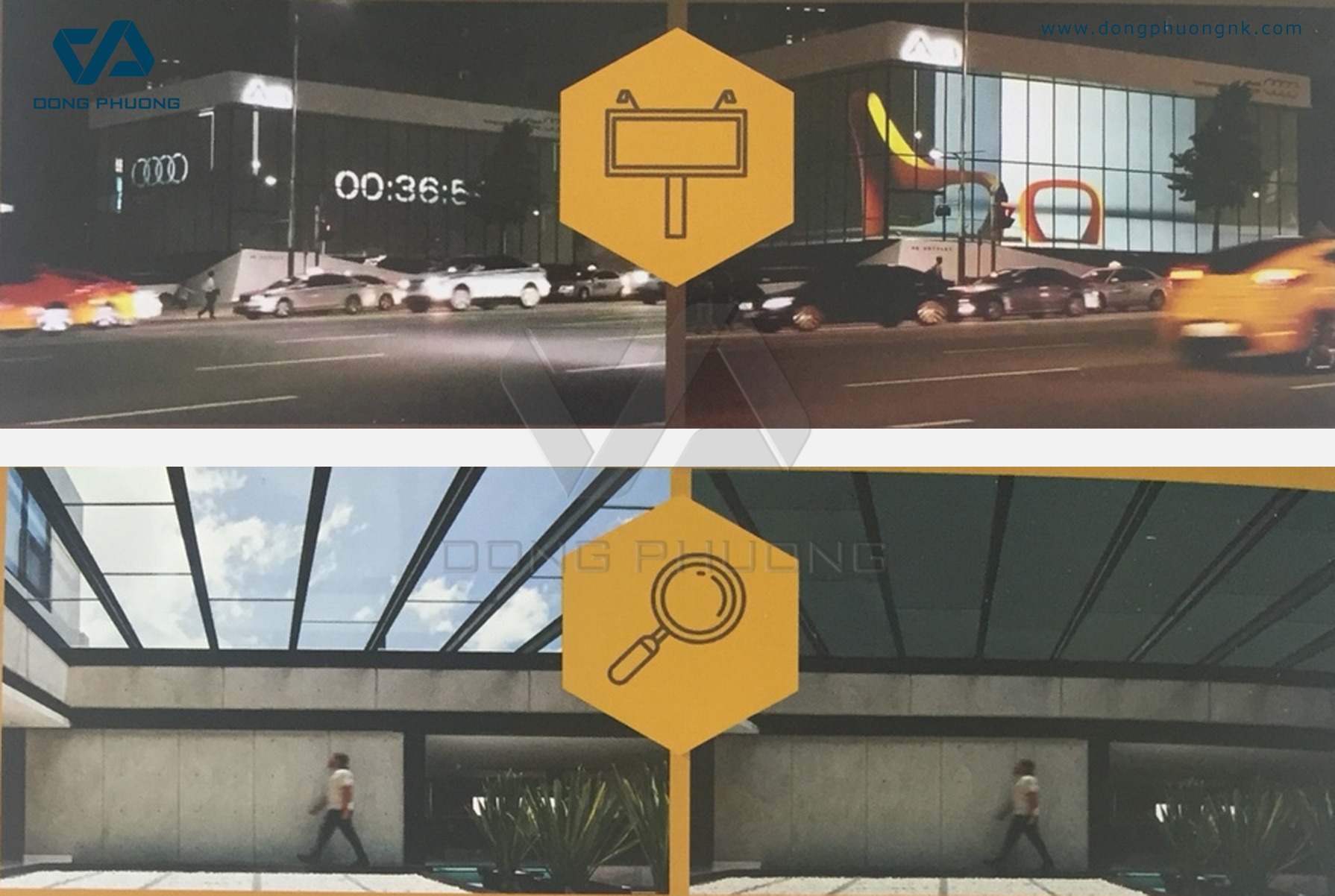 - Biển quảng cáo: sử dụng kính điện làm vách kính store, vừa tiết kiệm chi phí thiết kế banner, apphic thô cứng, vừa có thể dễ dàng thay đổi các mẫu quảng cáo mà lại rất chuyên nghiệp, sang trọng.