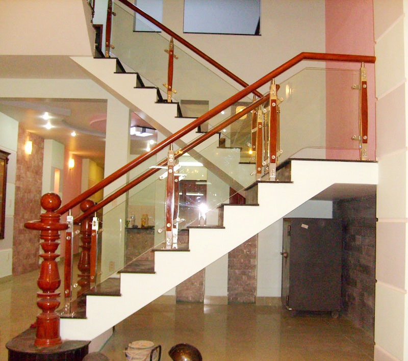 - Cầu thang kính trụ ngắn: Trụ cầu thang kính cao khoảng 600mm Trông rất chắc chắn, vững vàng tạo cho bạn sự an tâm tuyệt đối khi sử dụng.