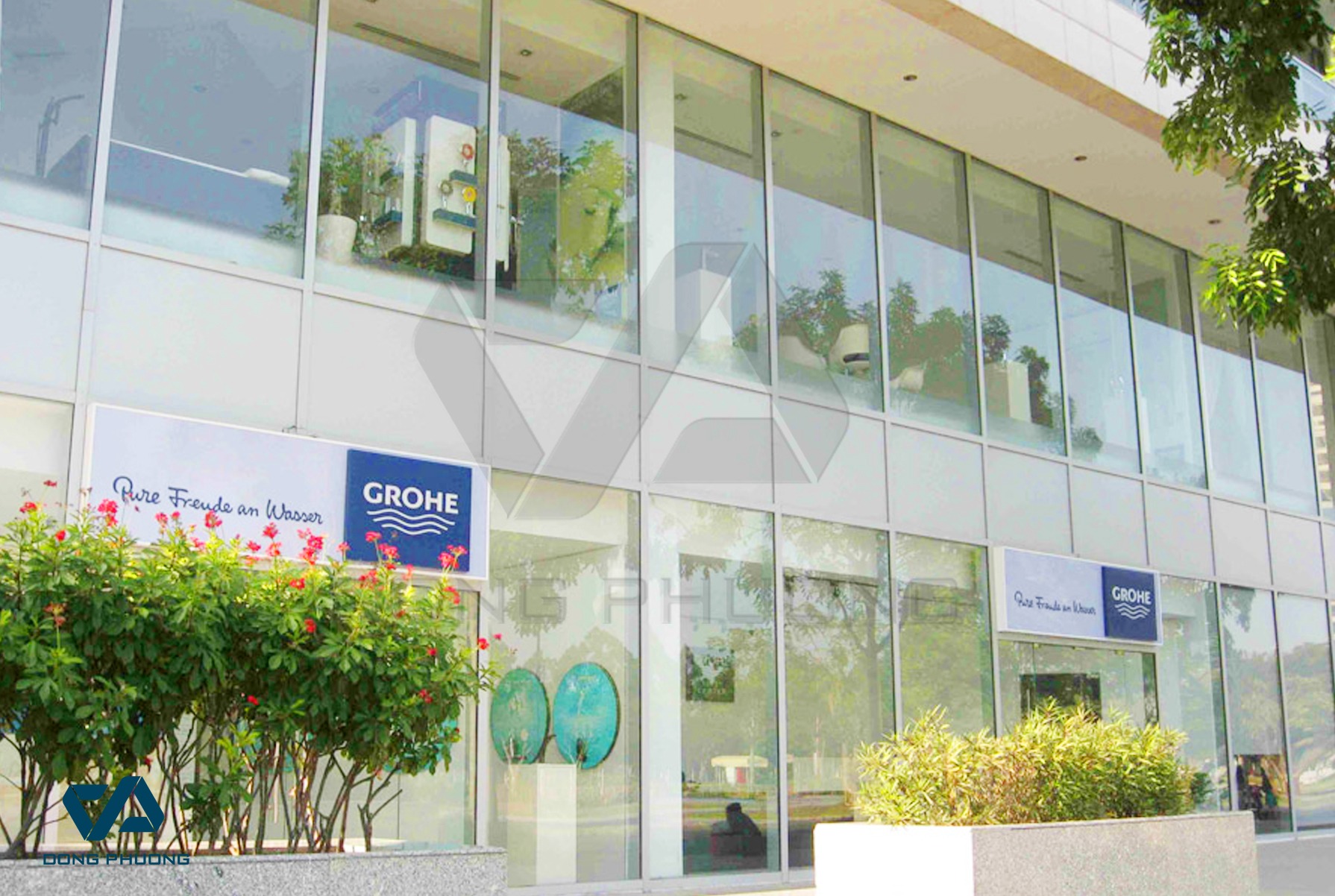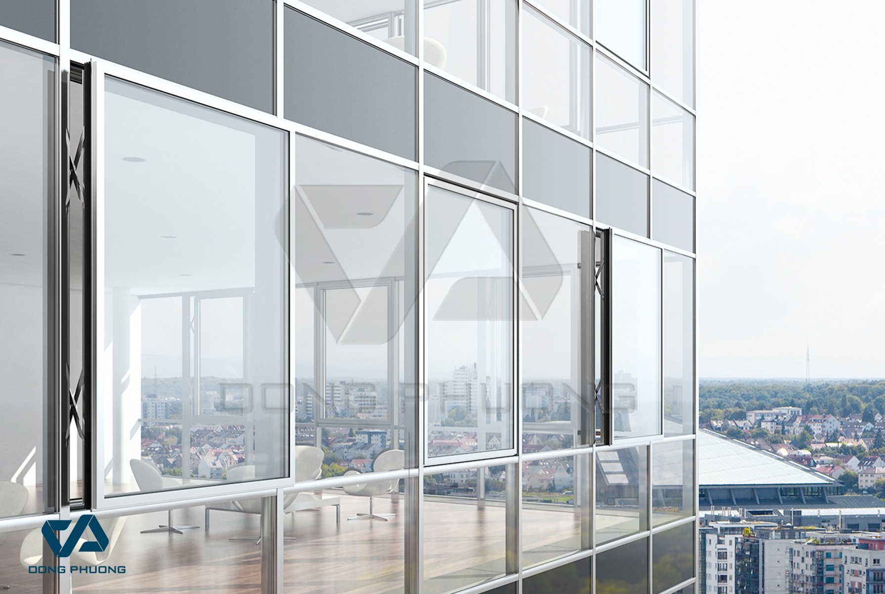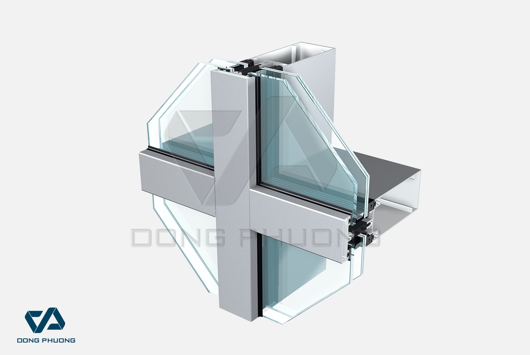 Hệ thống mặt dựng bán đồng nhất áp dụngcho các công trình lớn ở các khu vực dân cư, là hệ thống mặt dựng kết hợp hệ thống mặt dựng dán thông thường và hệ thống mặt dựng đồng nhất.