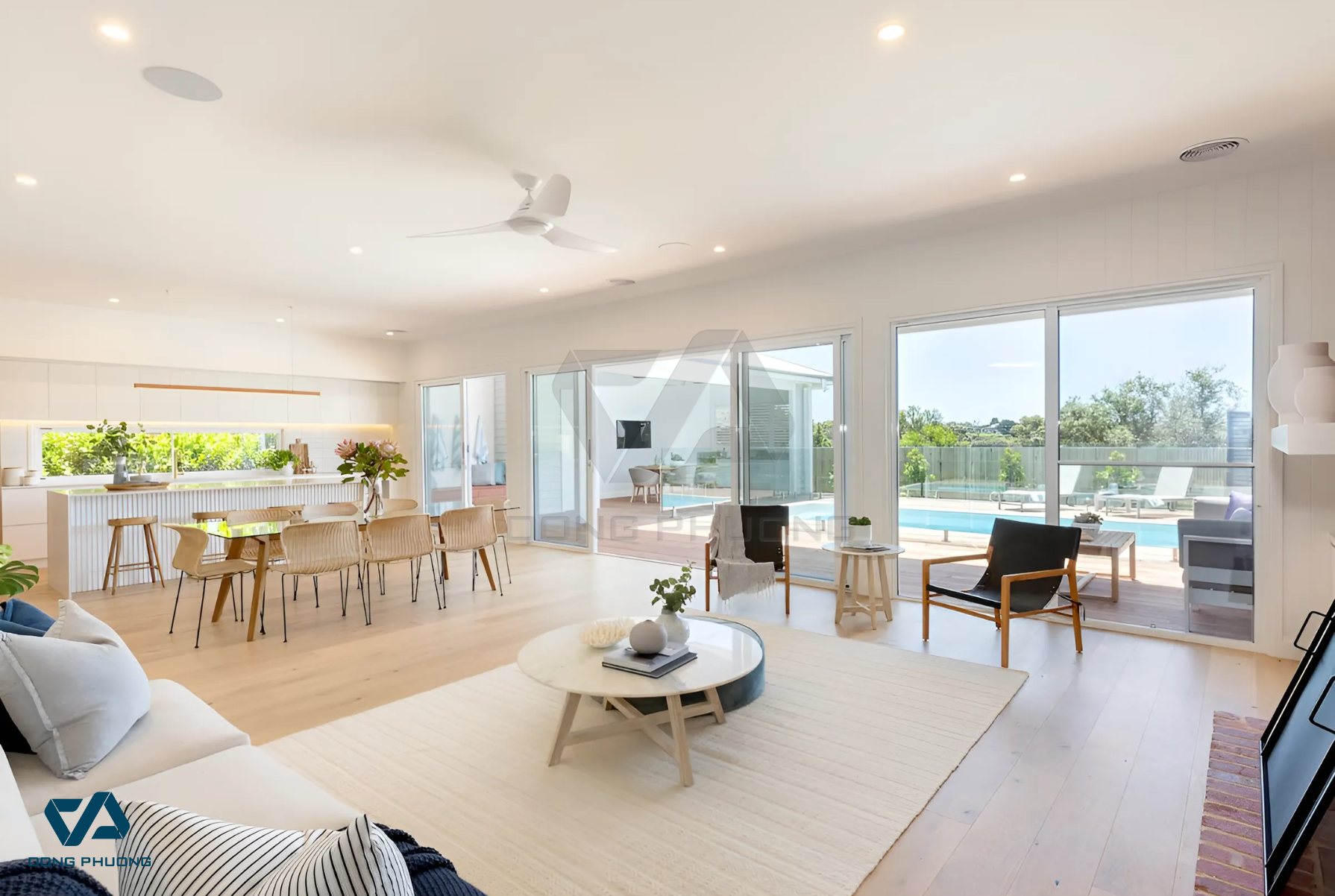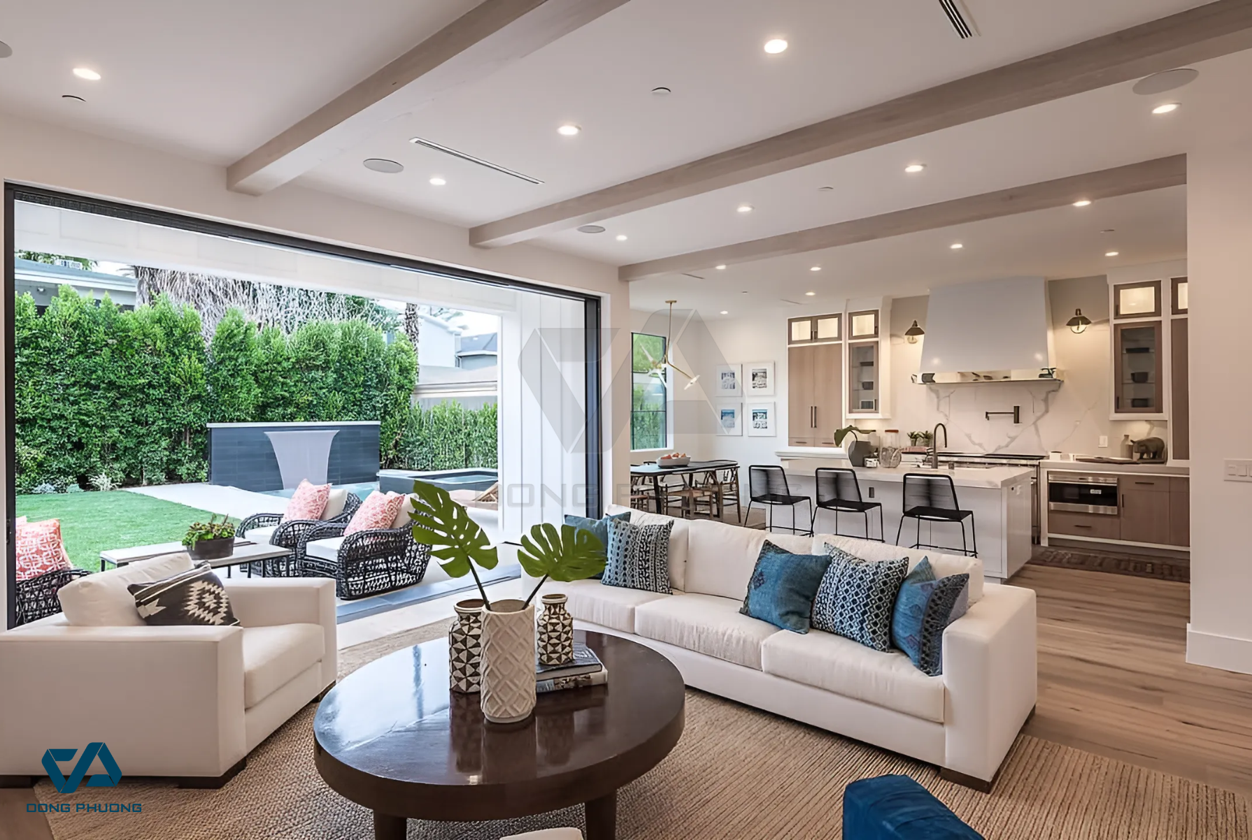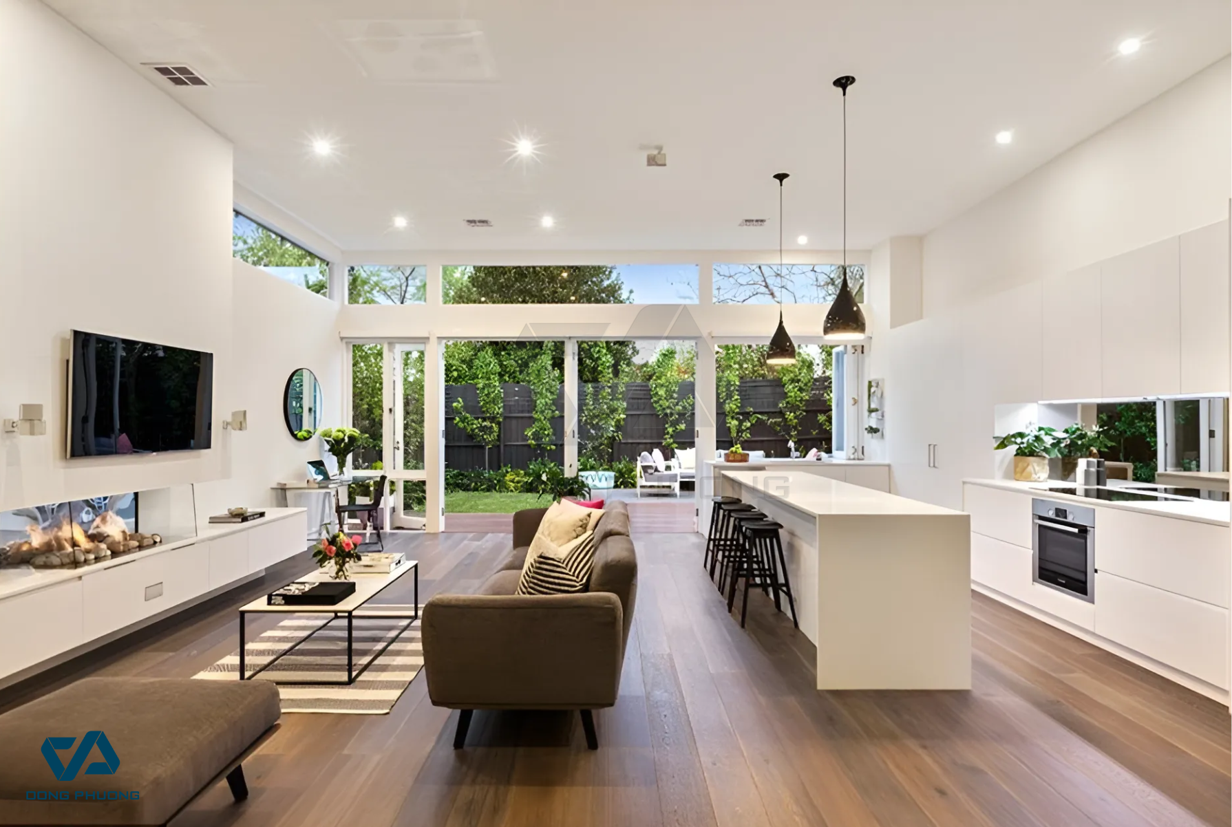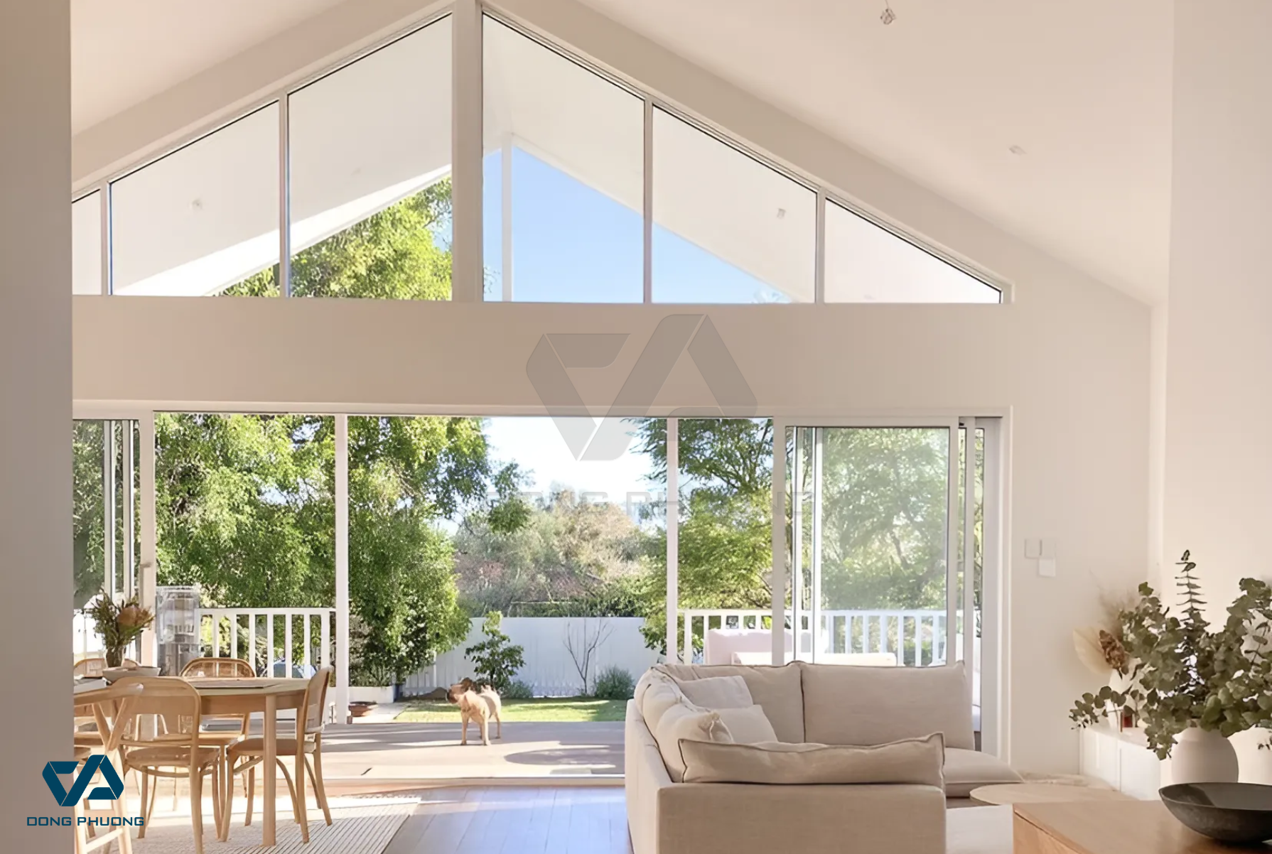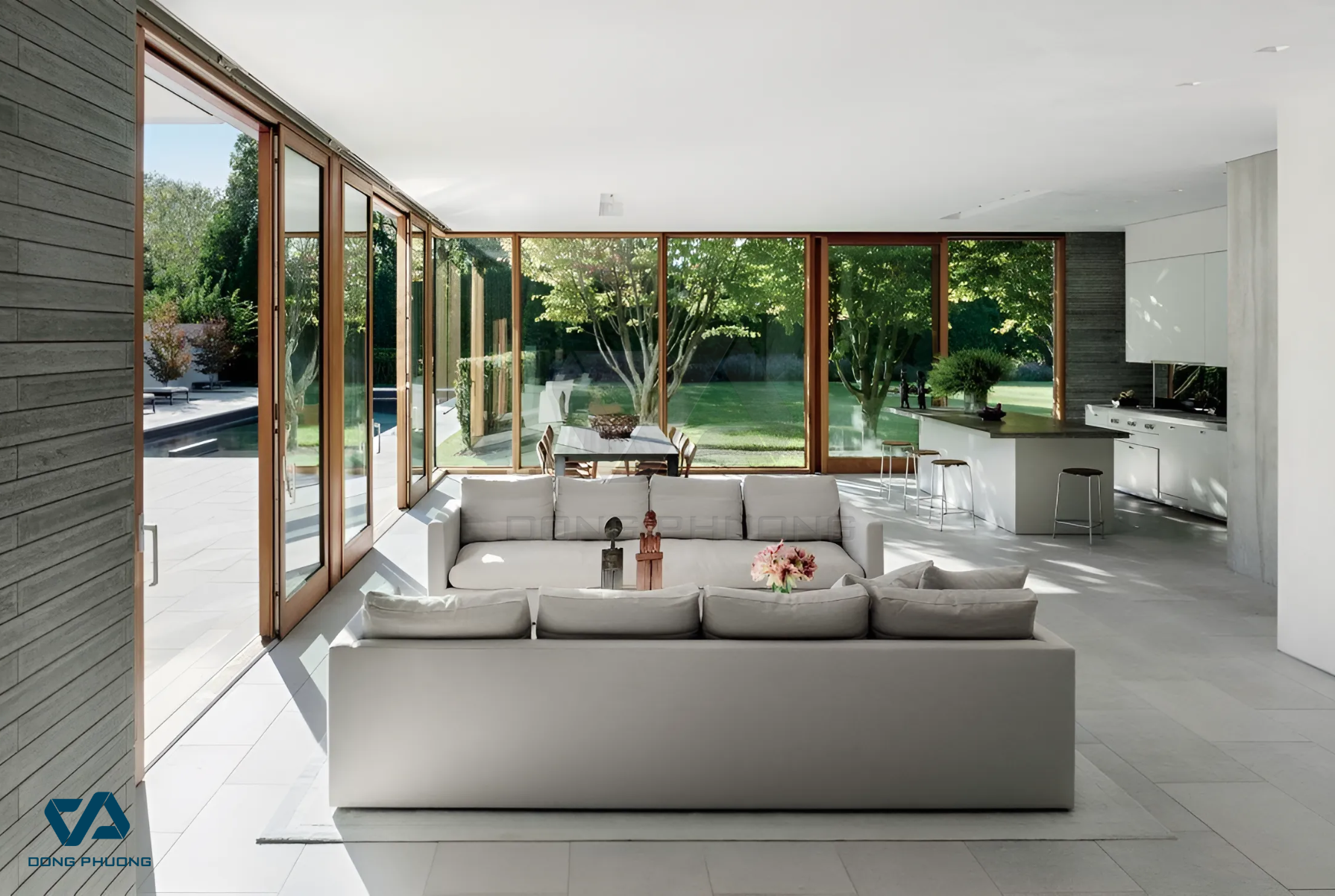 - Cửa lùa slim-line viền mảnh: giúp mở rộng tối đa diện tích kính, đón ánh sáng tự nhiên tràn vào không gian. Loại cửa này đặc biệt lý tưởng cho phòng khách, phòng ngủ cần độ sáng cao.