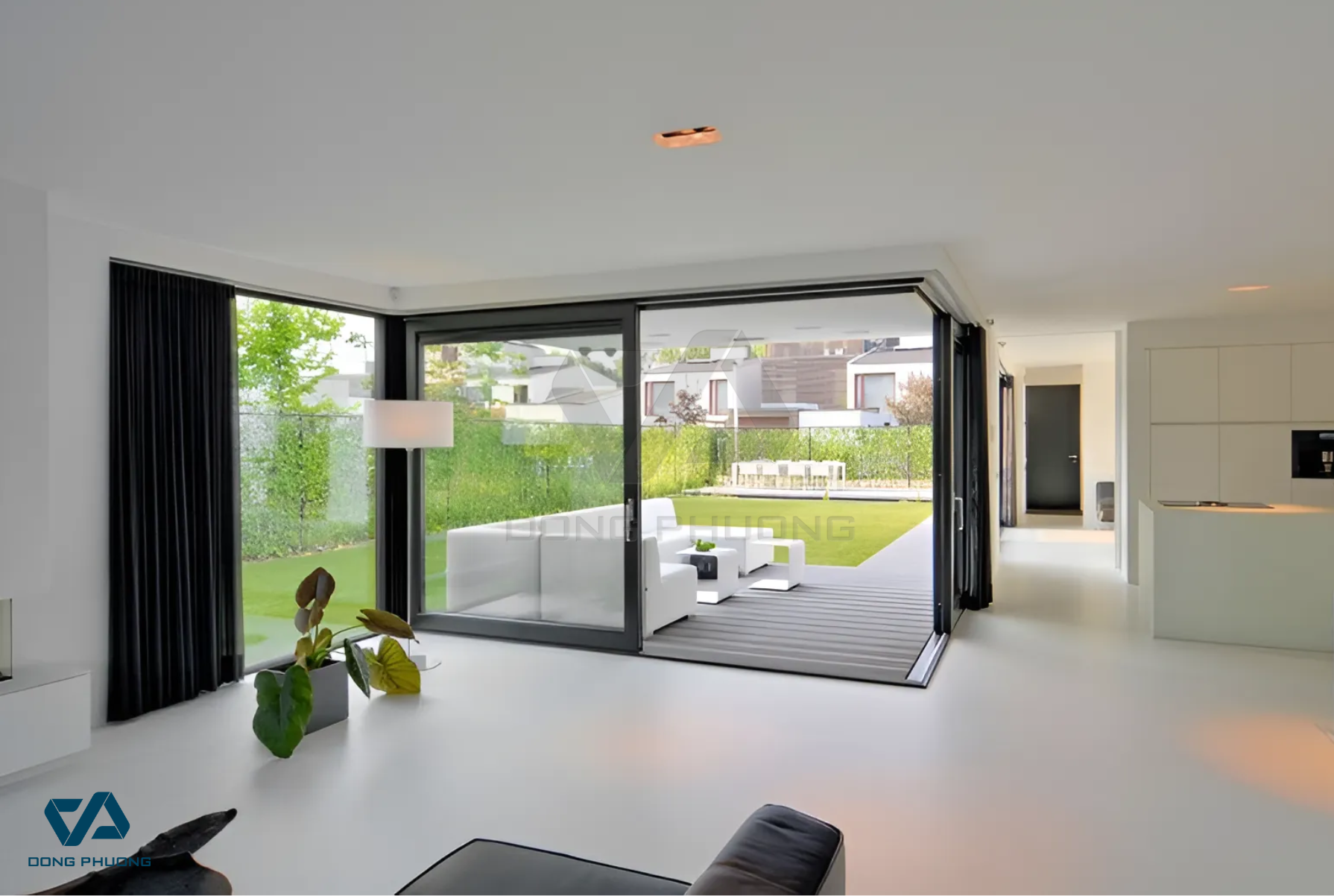 - Cửa trượt Slim Panorama: Khung siêu mảnh, có thể mở rộng toàn bộ bề ngang.