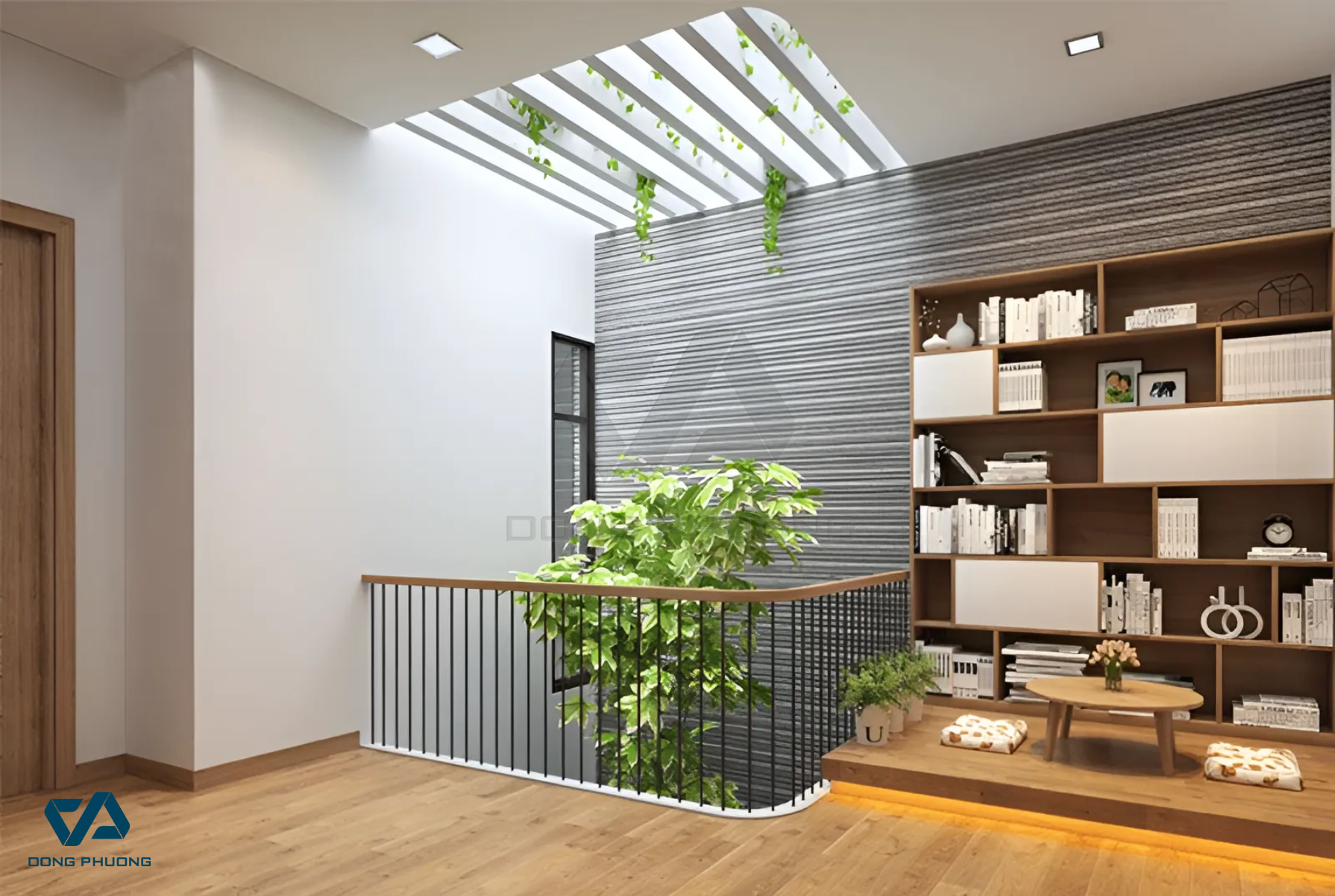 - Giếng trời kết hợp rèm điều chỉnh sáng: dễ dàng kiểm soát lượng ánh sáng.