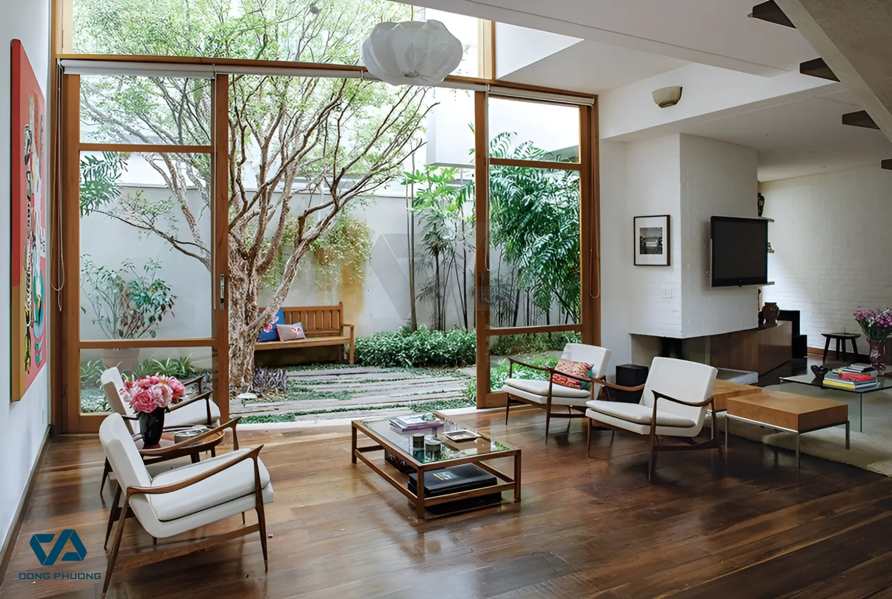 - Tăng tính thẩm mỹ: cửa như một “khung tranh khổng lồ”, biến cảnh quan thành điểm nhấn nội thất.