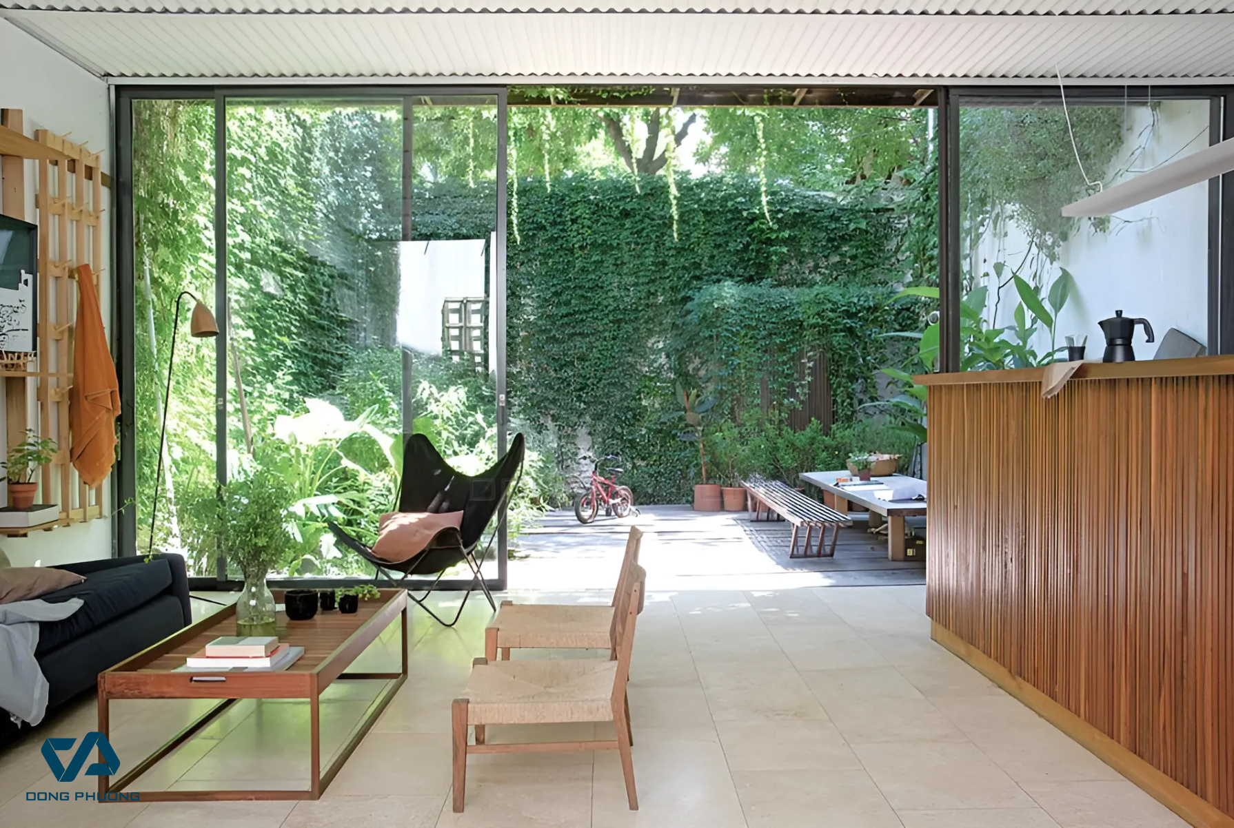 Cửa kính hướng Tây hoặc Tây Nam là nơi nhận nắng nhiều nhất trong ngày. Nếu không bố trí hợp lý, những tấm kính lớn ở các hướng này có thể biến không gian thành một “chiếc lò” vào buổi chiều.