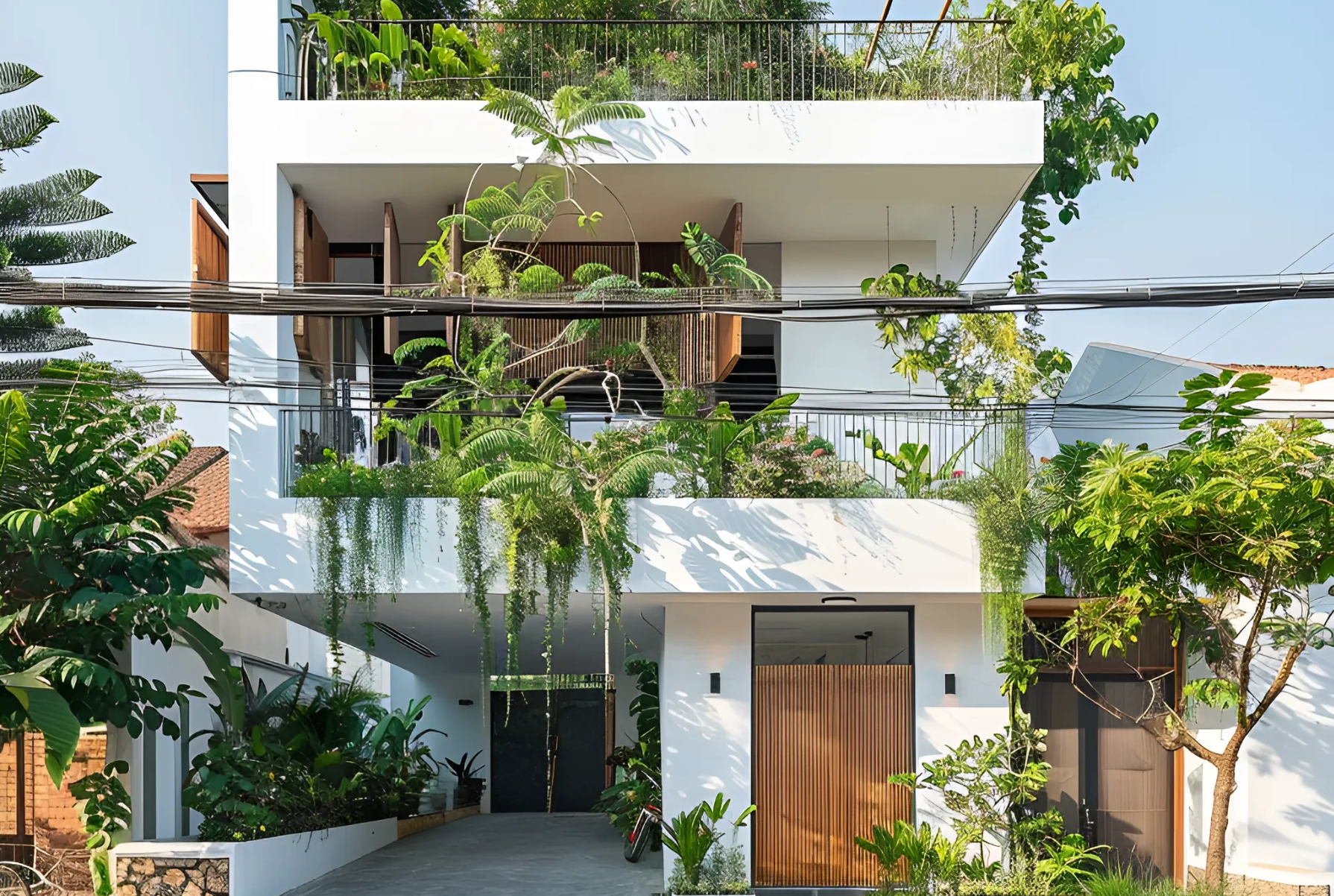 - Tropical: Khung trắng sáng, kết hợp cây xanh.