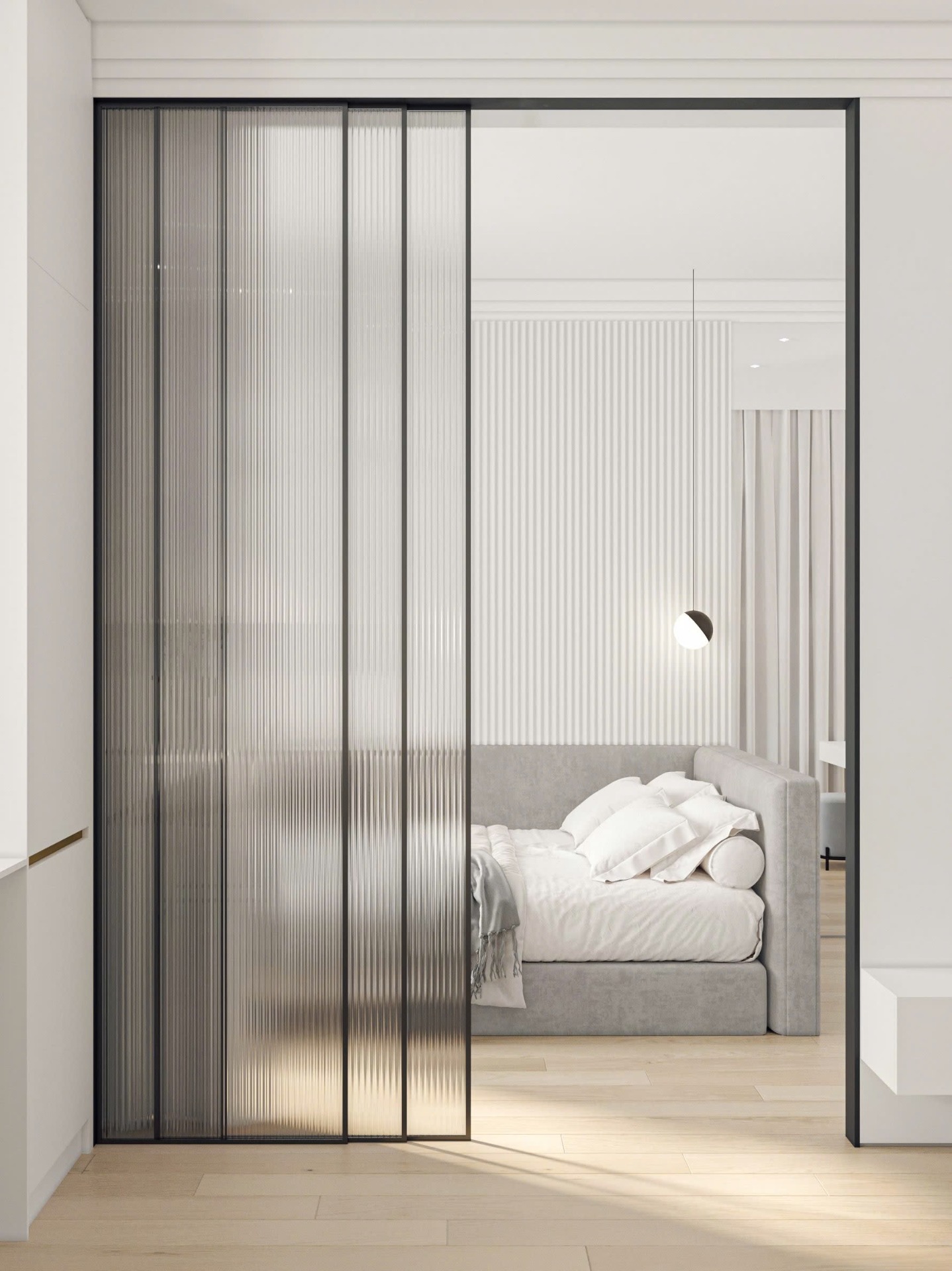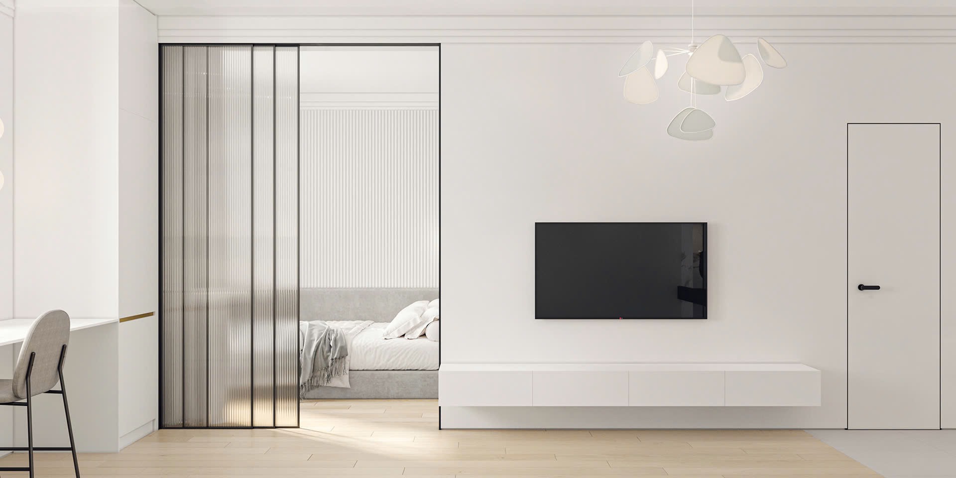 Đặc biệt trong nội thất, cửa slim còn được dùng để chia phòng khách và phòng làm việc, chia khu vực tập thể dục với góc thiền hoặc khu bếp - mà vẫn giữ được sự thông thoáng thị giác.