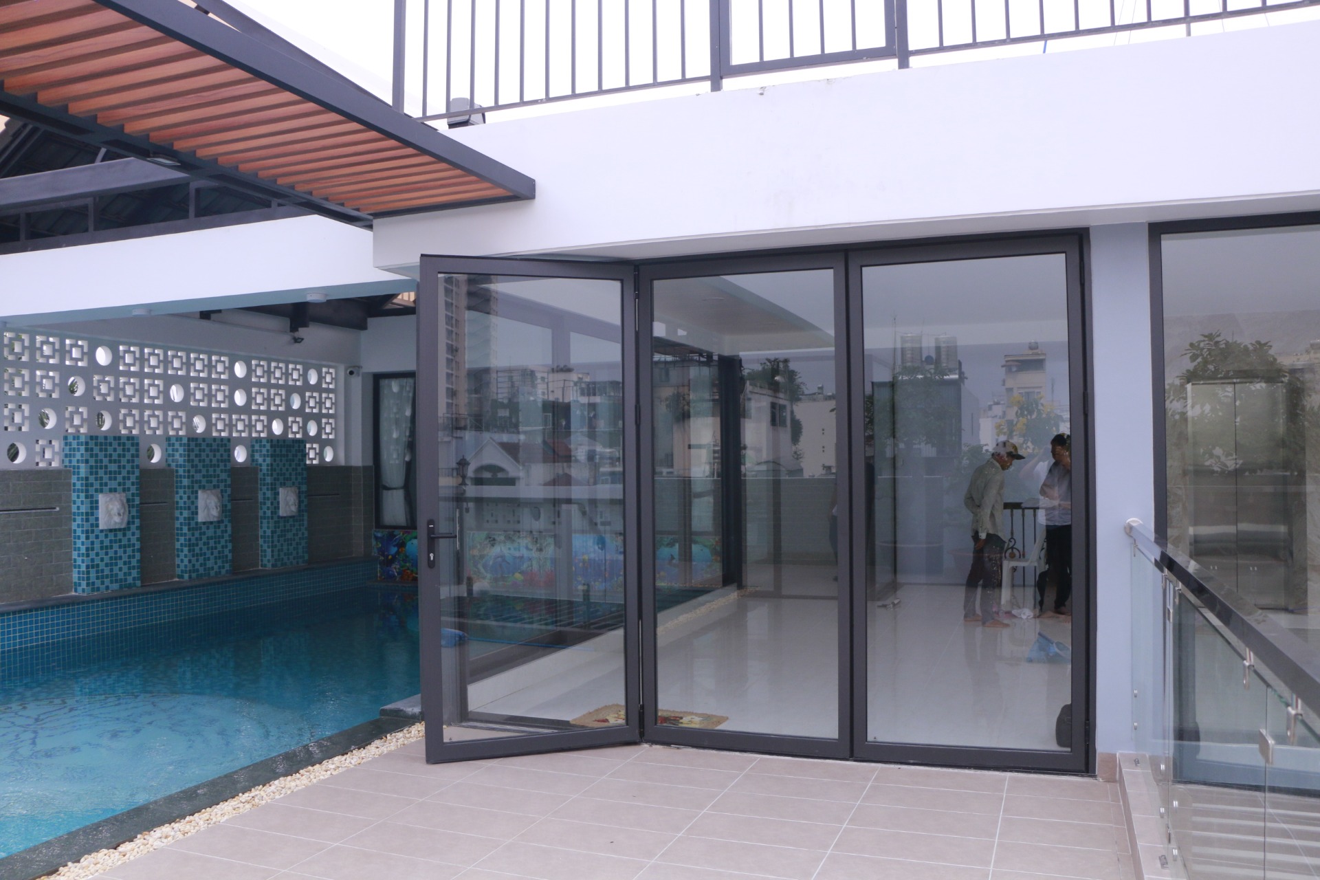 Cửa lùa xếp: nếu như cửa mở quay 4 cánh có một chút nhược điểm là cửa sẽ bị xệ, thì cửa lùa xếp sẽ giải quyết được nhược điểm này bởi cánh cánh cửa sẽ di chuyển và xếp gấp về một bên nhờ bánh xe chạy trên ray lùa. Giải pháp này phù hợp với những không gian rộng, giúp tối ưu diện tích, tạo phong cách sống hiện đại, trẻ trung và năng động.