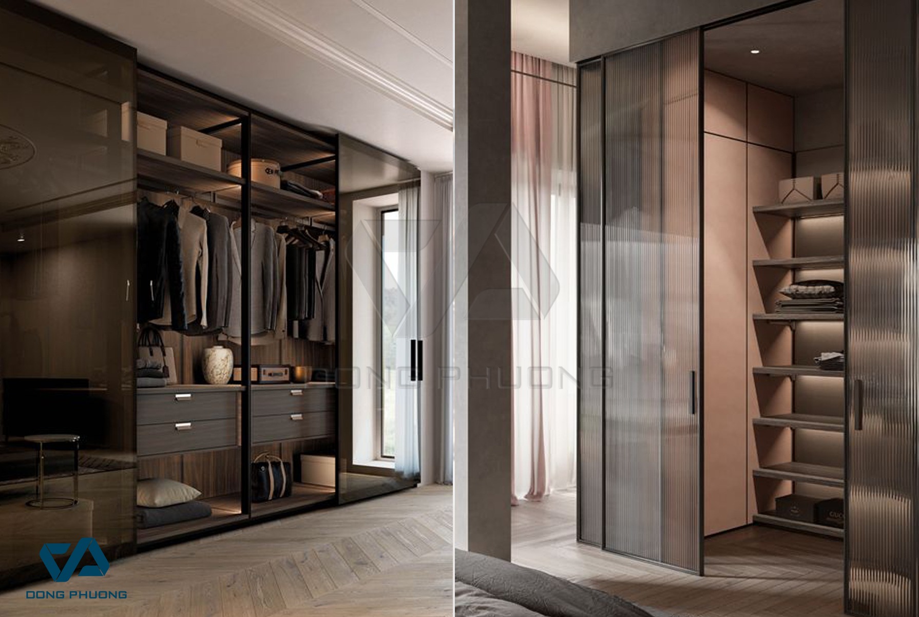 Hiện nay, thanh nhôm định hình cánh kính khung nhôm mà Đông Phương sử dụng phổ biến cho tủ áo, và một số cho tủ bếp. Cánh kính khung nhôm tủ áo có 2 hệ cơ bản là hệ mở lùa và hệ mở quay, đặc điểm nổi bật là thanh nhôm nhỏ, nhưng dày, cứng cáp và phụ kiện đi kèm là thì linh hoạt trong mẫu mã, thương hiệu với chi tiết liên kết sang trọng.