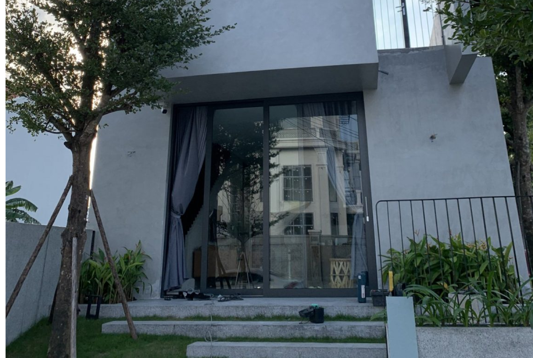 - Cửa sổ lùa rộng khung mảnh, kết hợp lam chắn nắng, mang nét kiến trúc châu Âu hiện đại.