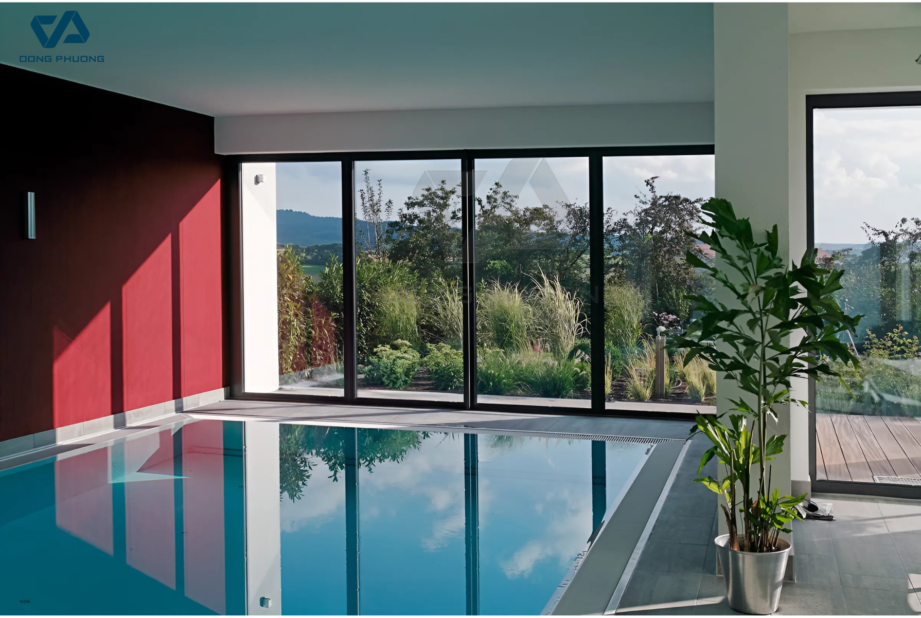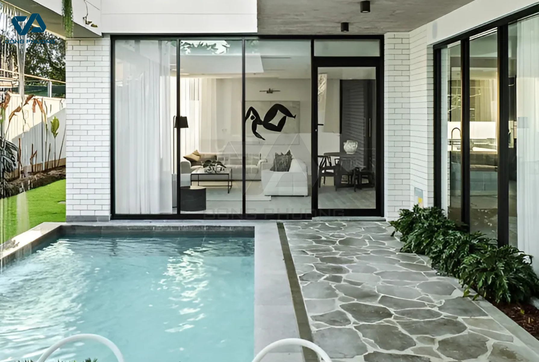 Cửa ngăn cách với hồ bơi cho biệt thự