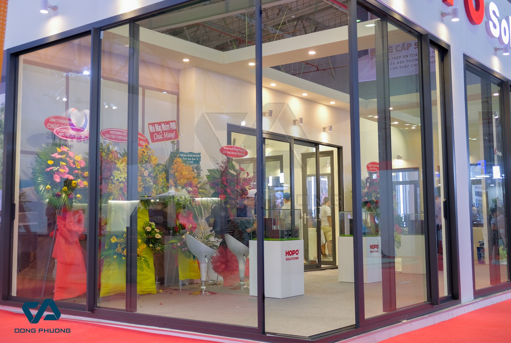 Cửa lùa slim góc vuông tại triển lãm Vietbuild