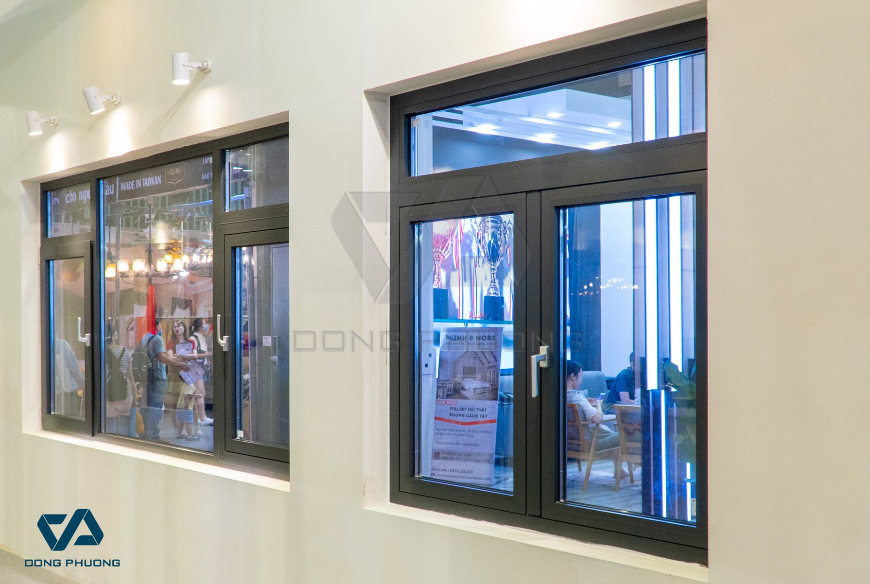 Cửa sổ mở quay 2 cánh và cửa sổ bật 2 cánh, ở giữa là ô cố định