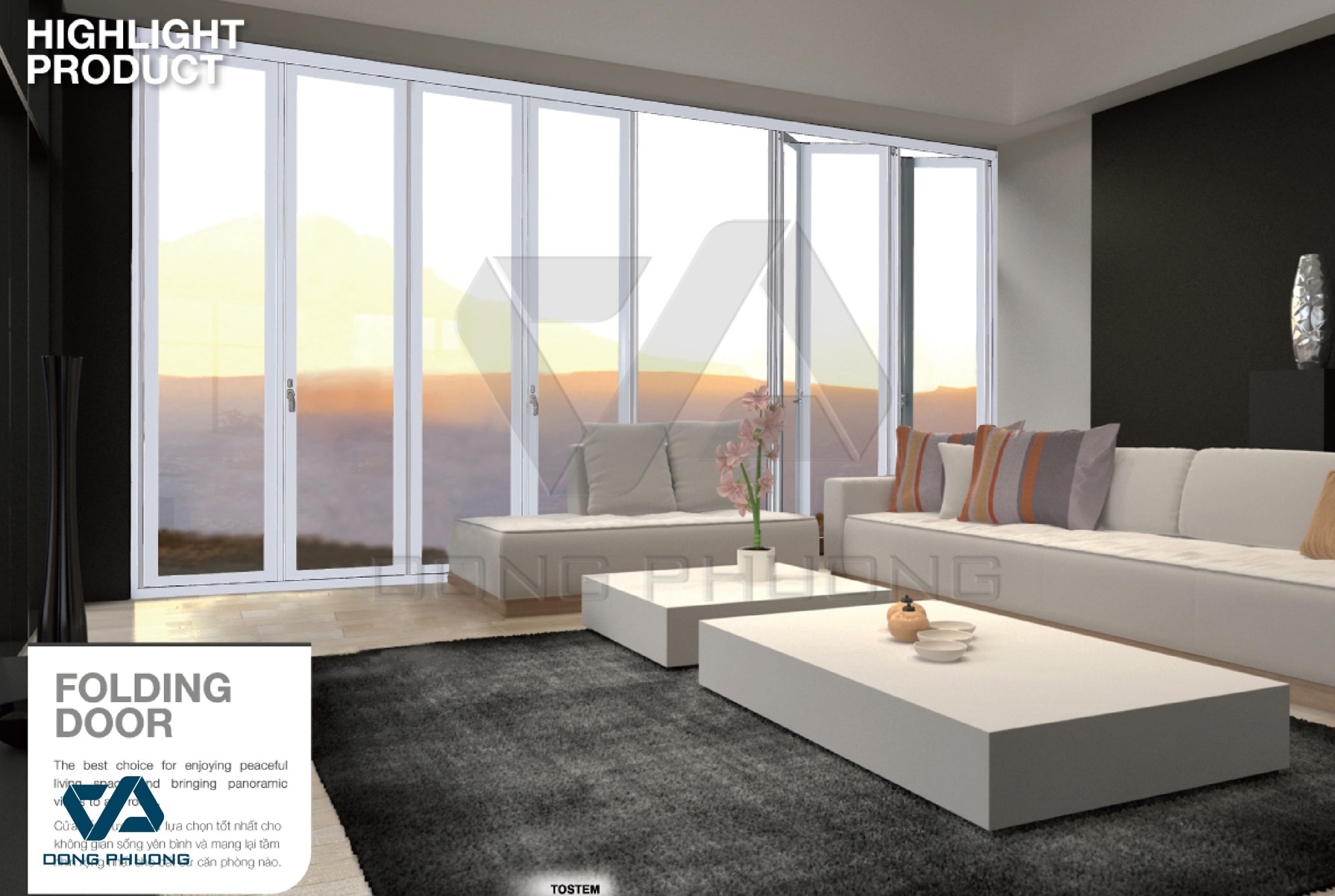 FOLDING DOOR - cửa xếp trượt là sự lựa chọn tốt nhất cho không gian sống yên bình và mang lại tầm nhìn rộng nhất cho bất cứ căn phòng nào. Sử dụng những profile có thiết kế thông mihn & linh kiện chất lượng cao để tạo nên sản phẩm đẹp và dễ dàng sử dụng. Thích hợp cho nhà ở cao cấp và khu thương mại, có thể nâng cấp lên 16 cánh gấp trượt và khoảng mở lớn nhất 12 mét.