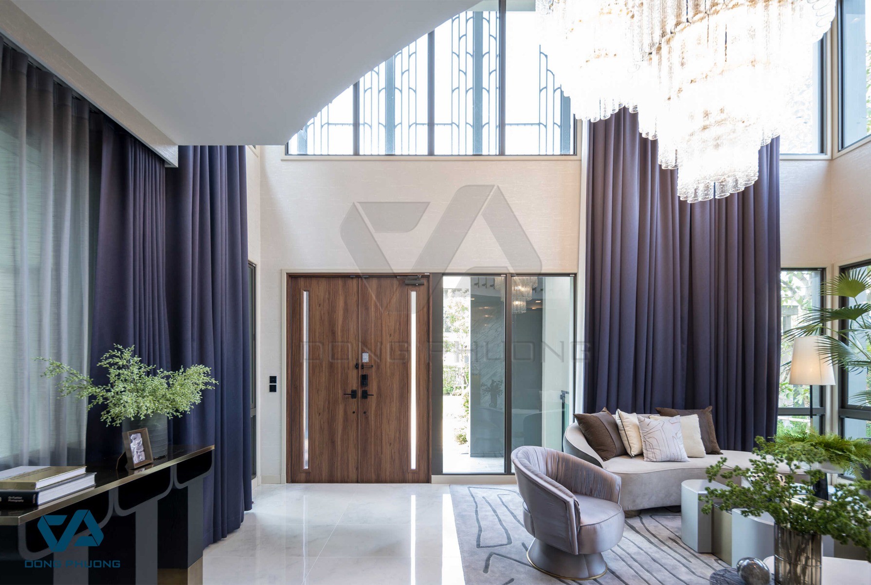 Sử dụng rèm vải cho cửa chính để trang trí và chống nóng hiệu quả