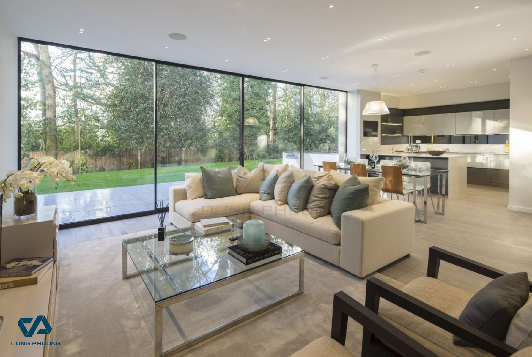 Panorama (cửa kính trượt toàn cảnh) đang là xu hướng toàn cầu. Loại cửa này giúp tầm nhìn rộng tới 95%, gần như xóa bỏ khung cửa. Đây là lựa chọn lý tưởng cho biệt thự có sân vườn hoặc view hồ bơi.