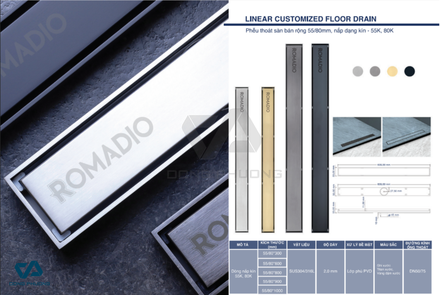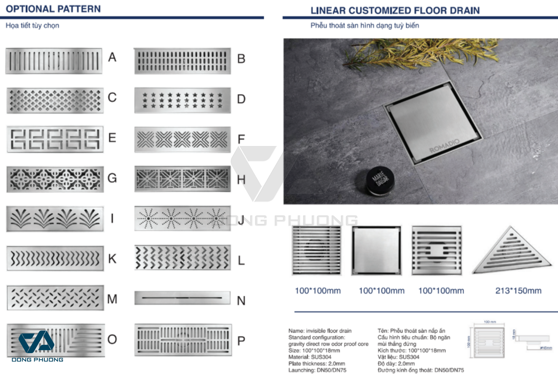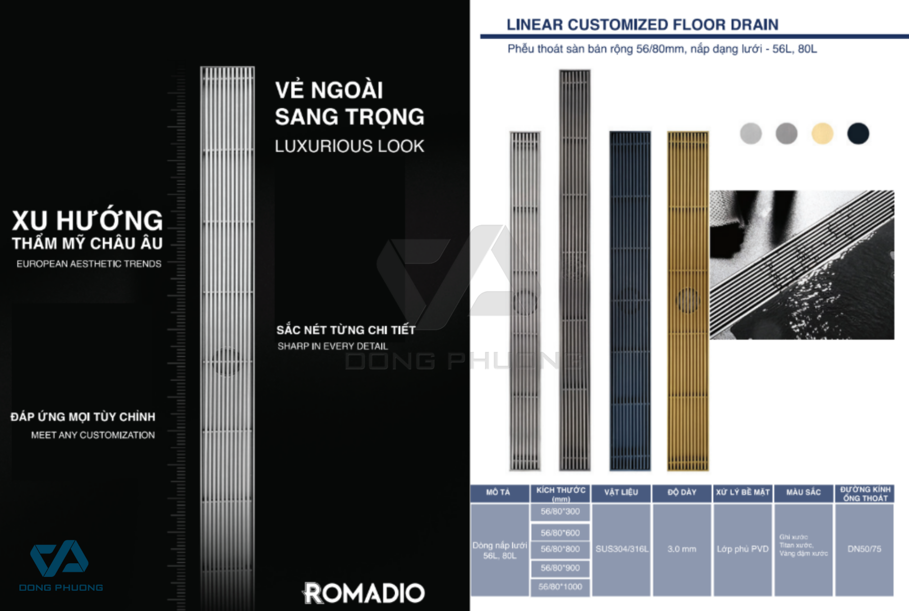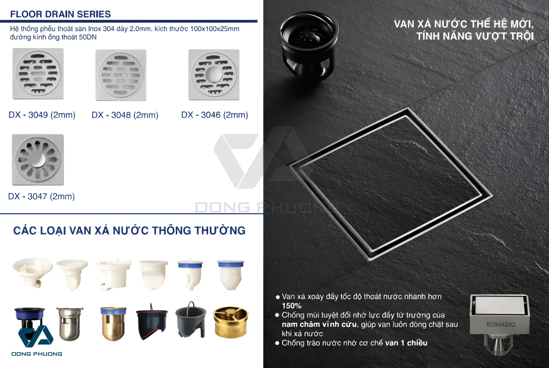 - Với kinh nghiệm thực tế từ nhiều công trình nhà phố, biệt thự, penthouse…, Đông Phương Plus hiện là đối tác phân phối chính hãng dòng phễu sàn D Series – Romadio.
