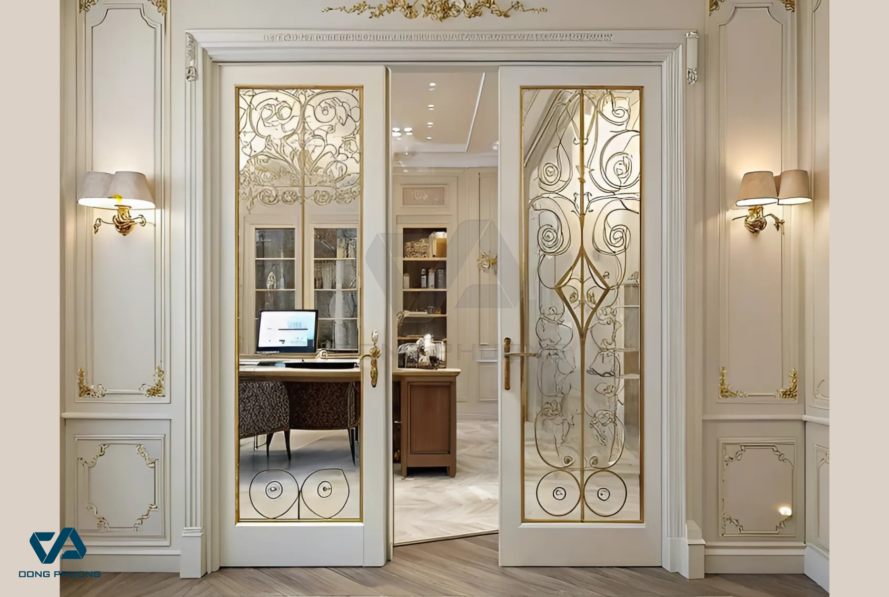 Cửa kính hộp nan cho biệt thự tân cổ điển