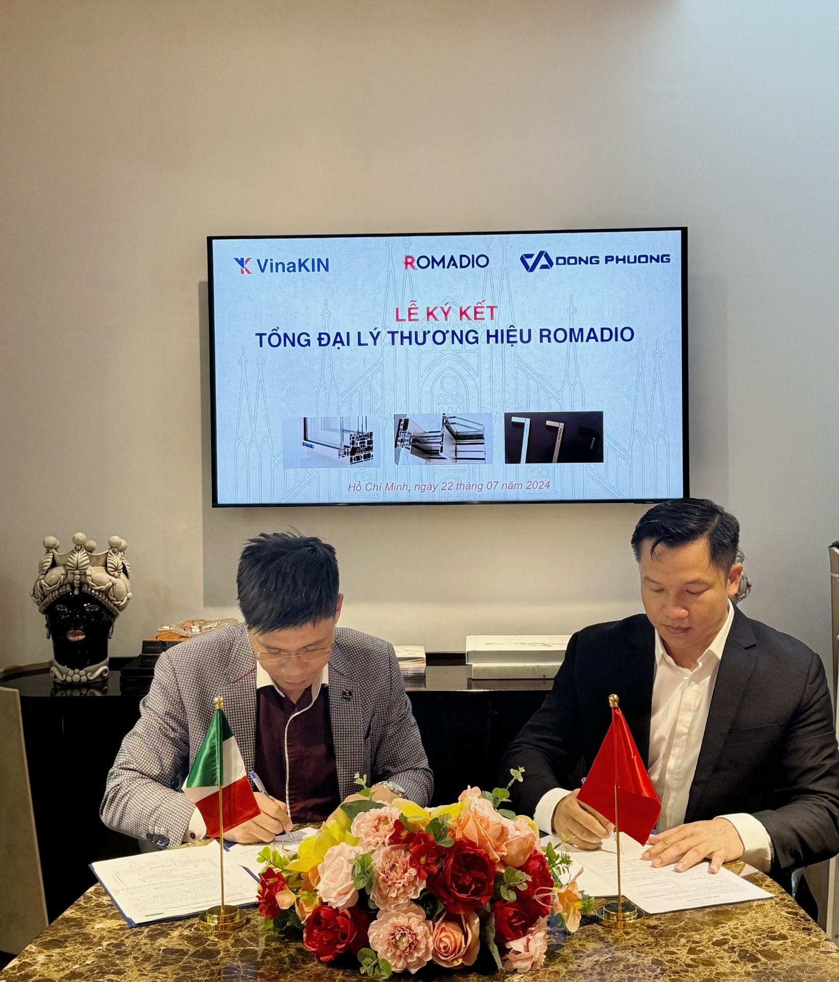 Buổi Lễ ký kết Tổng Đại Lý thương hiệu ROMADIO từ Công Ty Cổ Phần XNK Và Công Nghệ Việt Nam - đơn vị dẫn đầu về giải pháp phụ kiện Kim khí và Cửa nhôm cao cấp.