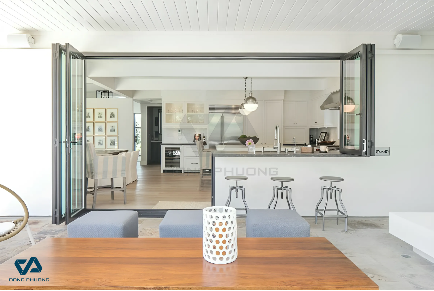 Mỗi không gian và phong cách nội thất lại cần một giải pháp cửa khác nhau để đạt được sự hài hòa và tiện dụng. Dưới đây là những hệ cửa được đánh giá cao về tính thẩm mỹ và hiệu quả khi ứng dụng cho phòng khách liền bếp: