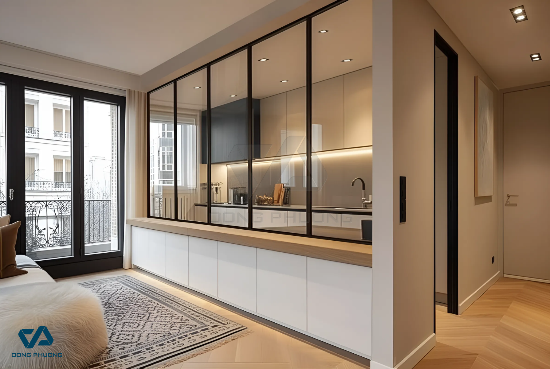 4. Cách đồng bộ hệ cửa với nội thất phòng khách – bếp