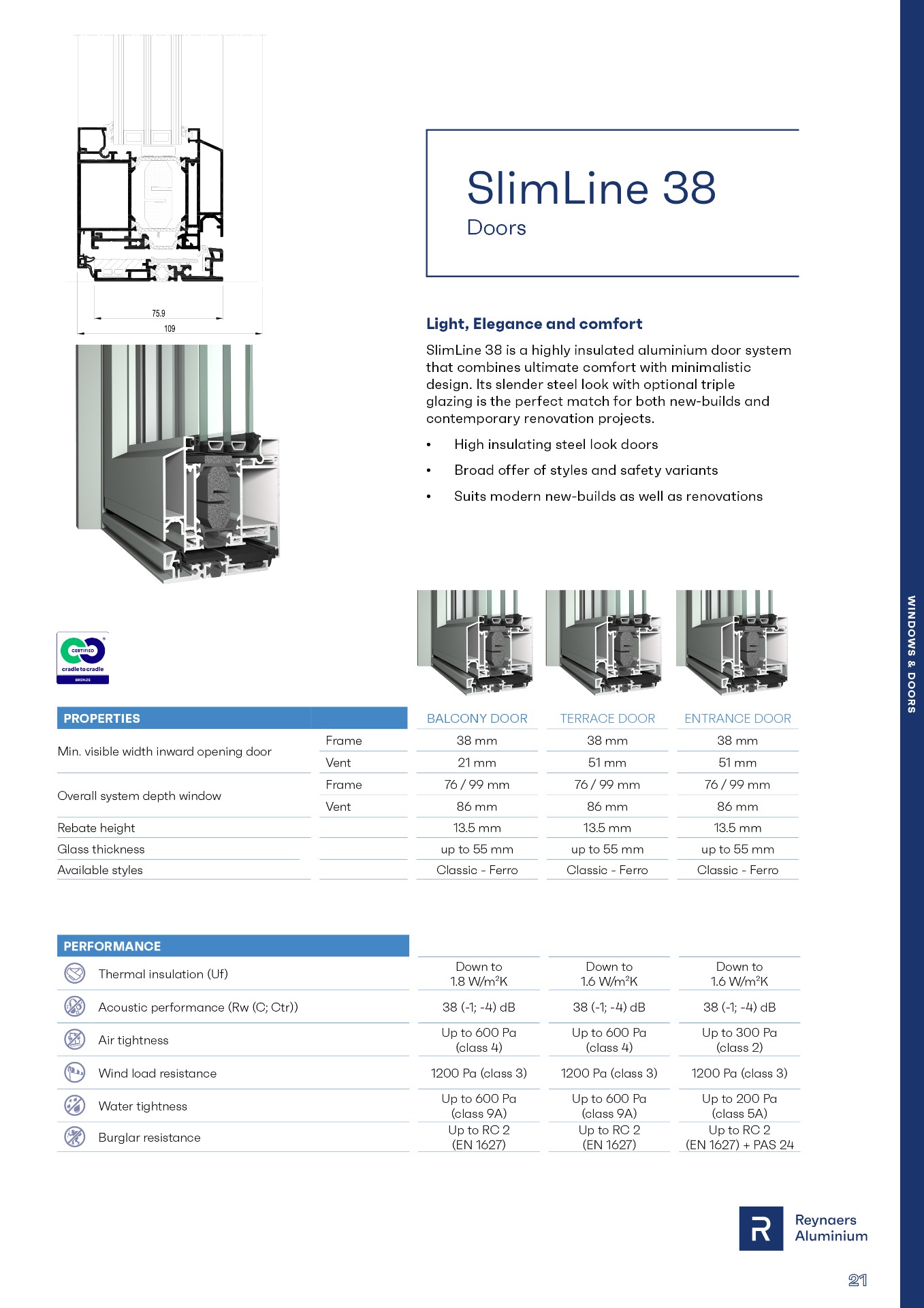 Thiết kế thanh mảnh bằng thép giúp hệ thống cách nhiệt cao SlimLine 38 trở thành sự phù hợp hoàn hảo cho bất kỳ dự án hiện đại nào. Cửa sổ nhôm bền bỉ đã được hoàn thiện qua nhiều năm và mang đến sự tự do thiết kế không giới hạn nhờ có nhiều biến thể tối giản.