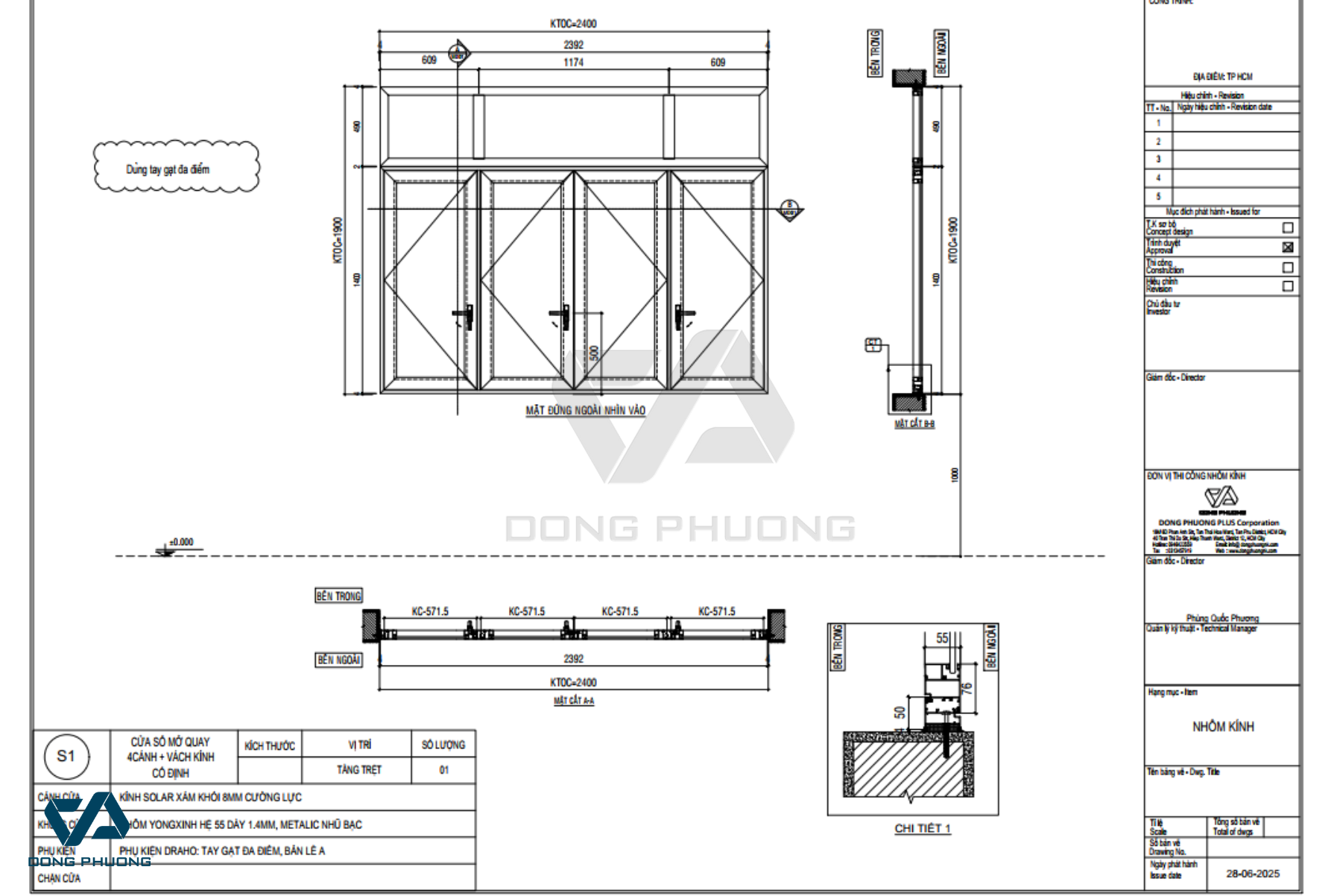 Bản vẽ chi tiết là “chìa khóa” đảm bảo cửa nhôm kính lắp đúng ngay từ đầu (Bản vẽ chi tiết cửa đi 4 cánh)