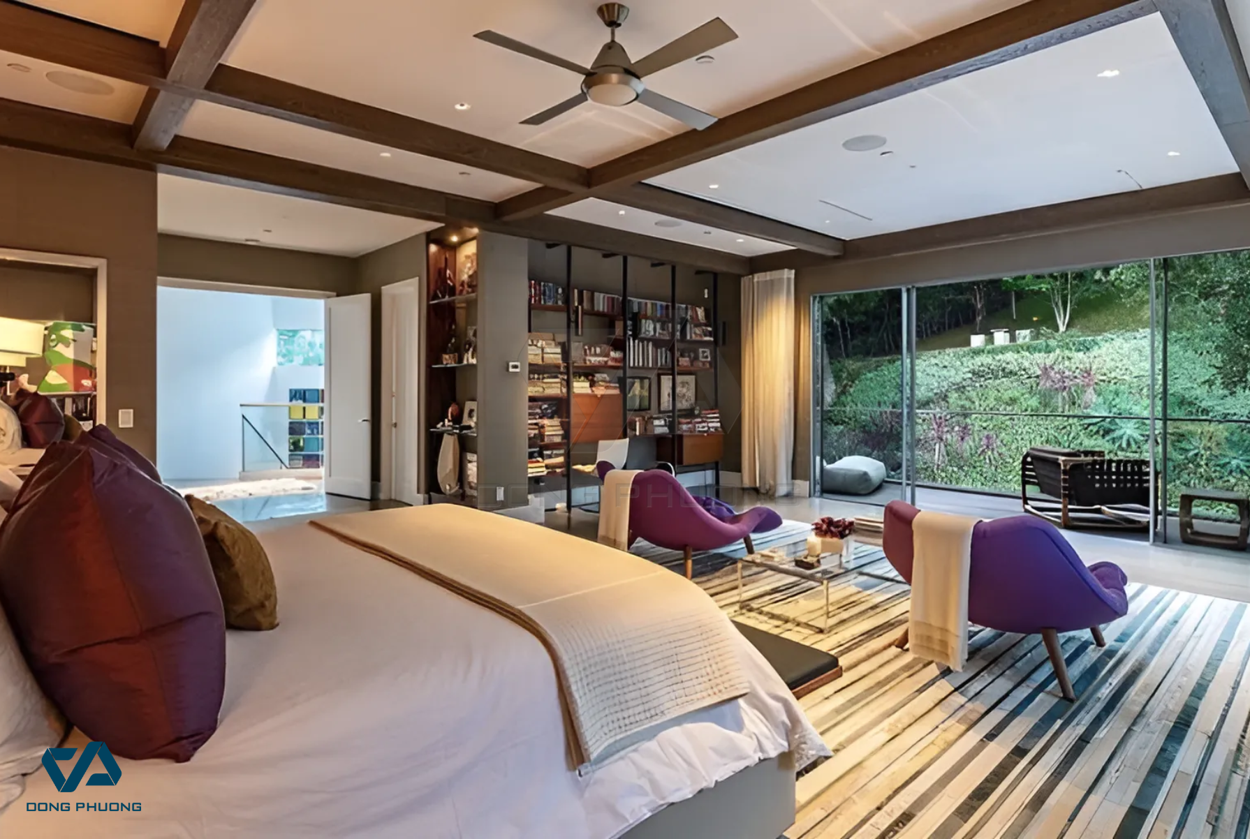 ● Nên dùng cửa kính diện tích lớn để ánh sáng tự nhiên khuếch tán đều, tránh bóng đổ gây mỏi mắt.