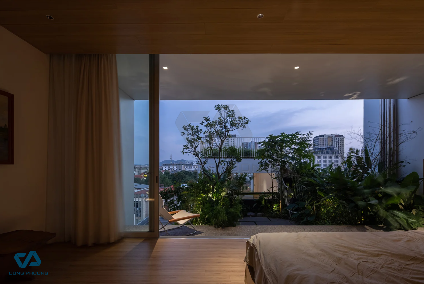 Cửa trượt Tostem với diện tích lớn, khung mảnh giúp biệt thự đón trọn ánh sáng tự nhiên.