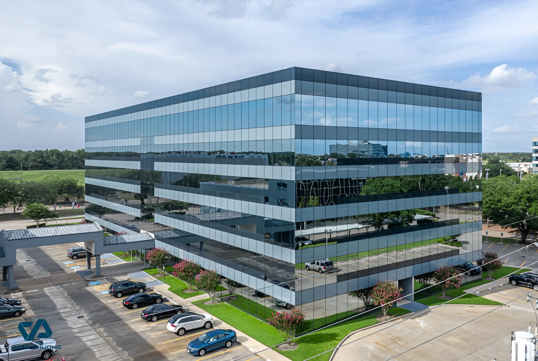 Vách kính mặt dựng (Curtain Wall) là hệ tường bao che bên ngoài của công trình, được tạo thành từ kính cường lực hoặc kính hộp kết hợp khung nhôm. Điều đặc biệt là hệ vách này không chịu lực chính từ công trình mà chỉ đóng vai trò bao che, chống nắng, chống mưa và tạo thẩm mỹ cho phần mặt tiền.