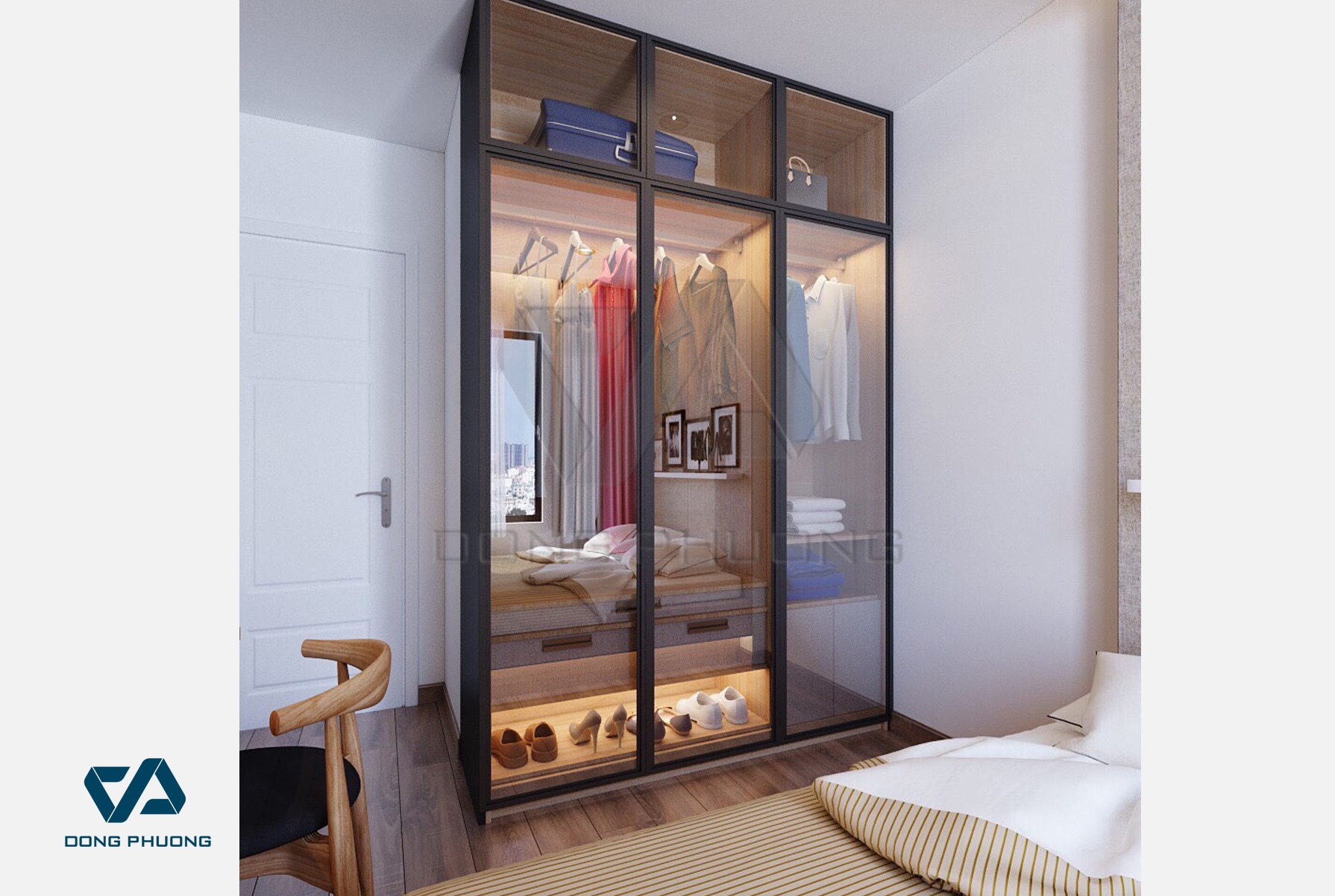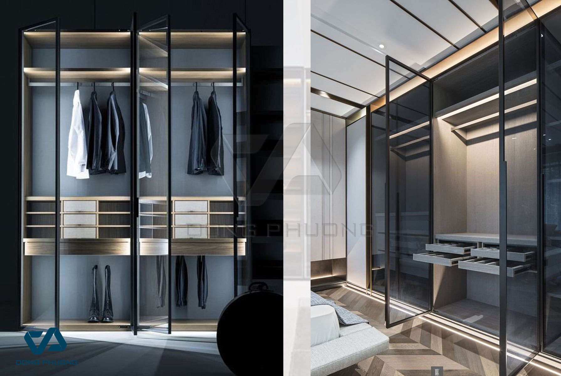 Hiện nay, thanh nhôm định hình cánh kính khung nhôm mà Đông Phương sử dụng phổ biến cho tủ áo, và một số cho tủ bếp. Cánh kính khung nhôm tủ áo có 2 hệ cơ bản là hệ mở lùa và hệ mở quay, đặc điểm nổi bật là thanh nhôm nhỏ, nhưng dày, cứng cáp và phụ kiện đi kèm là thì linh hoạt trong mẫu mã, thương hiệu với chi tiết liên kết sang trọng.